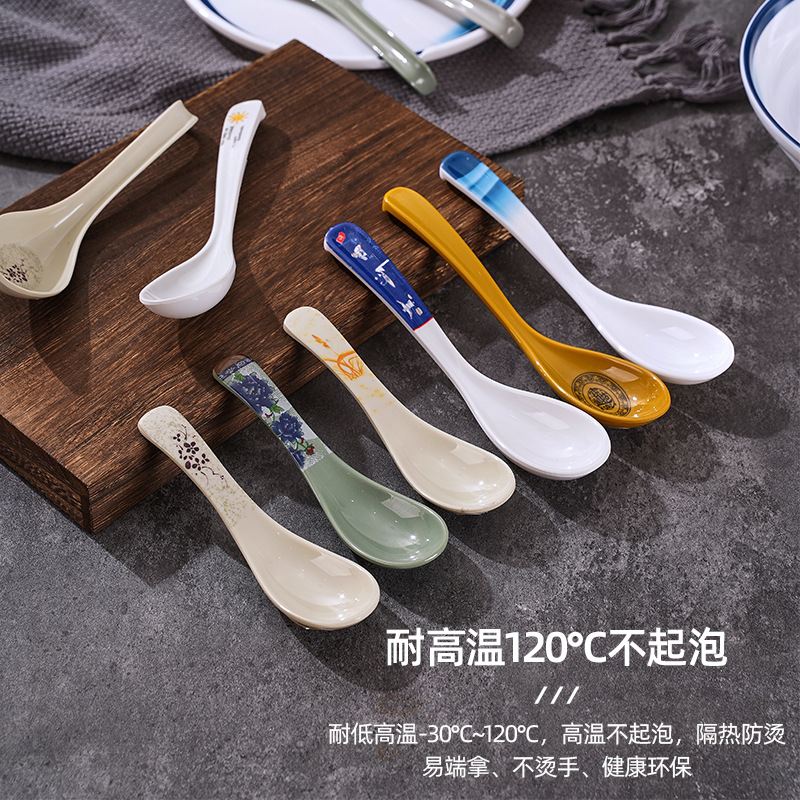 メラミンスプーン卸売り創意業務用スプーン曲げフックスプーン亀殻スプーン転倒防止長柄スプーンプラスチックスプーン食器