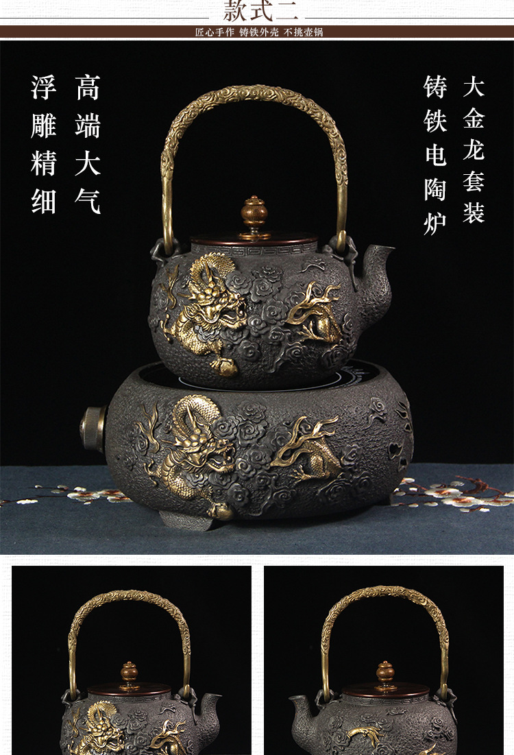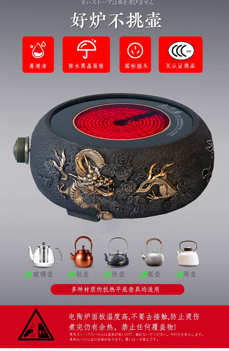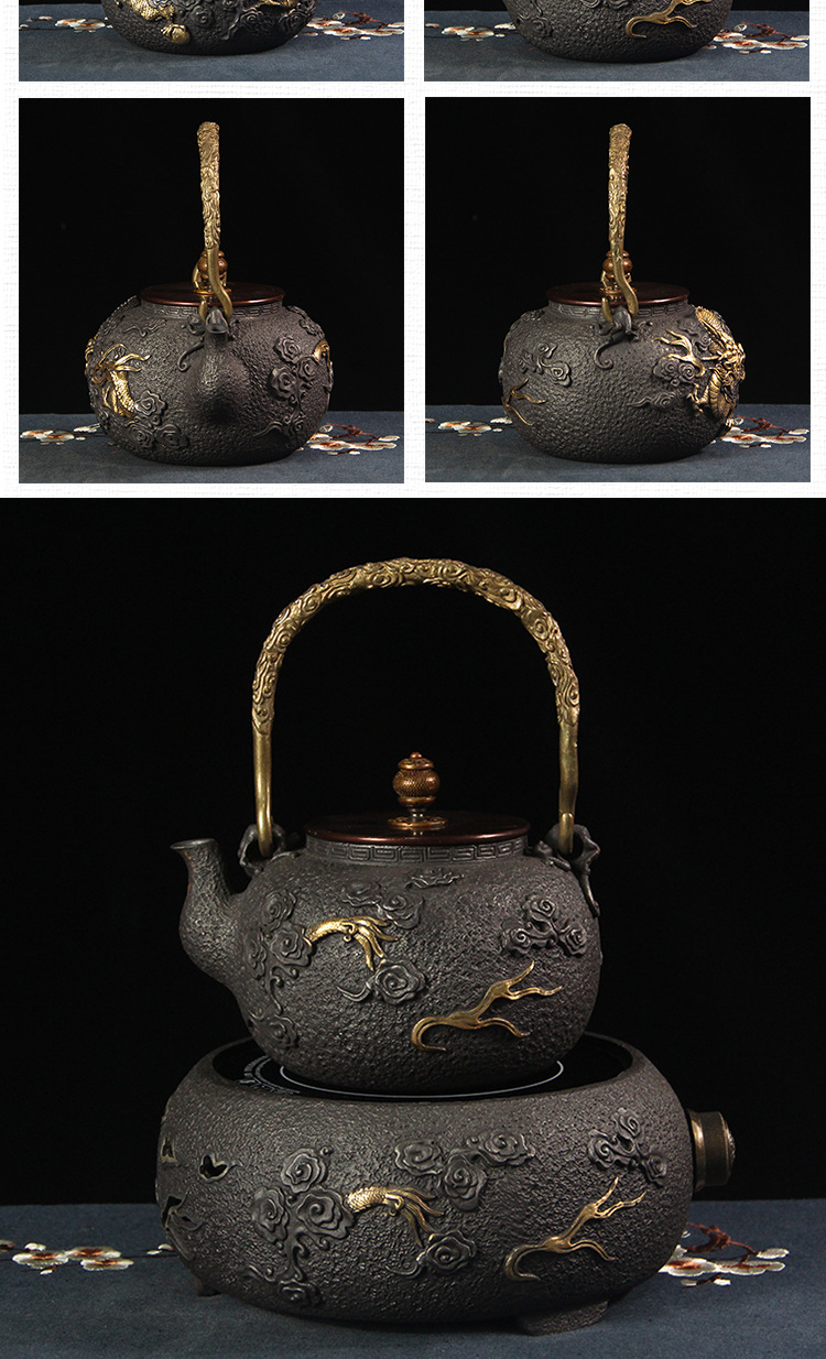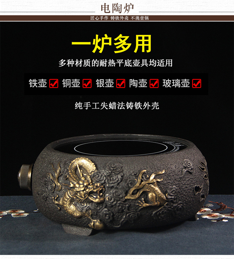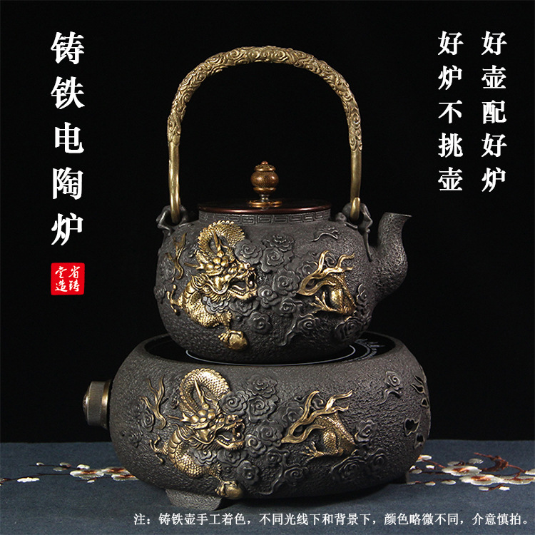 金龍蟠龍鋳鉄電気陶炉銅壺銀壺鋳鉄壺加熱用煮茶炉家庭用煮水茶器セット