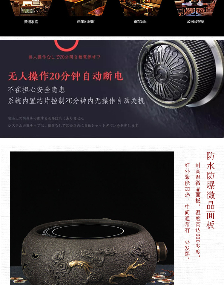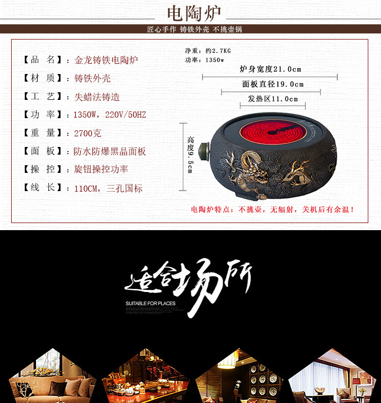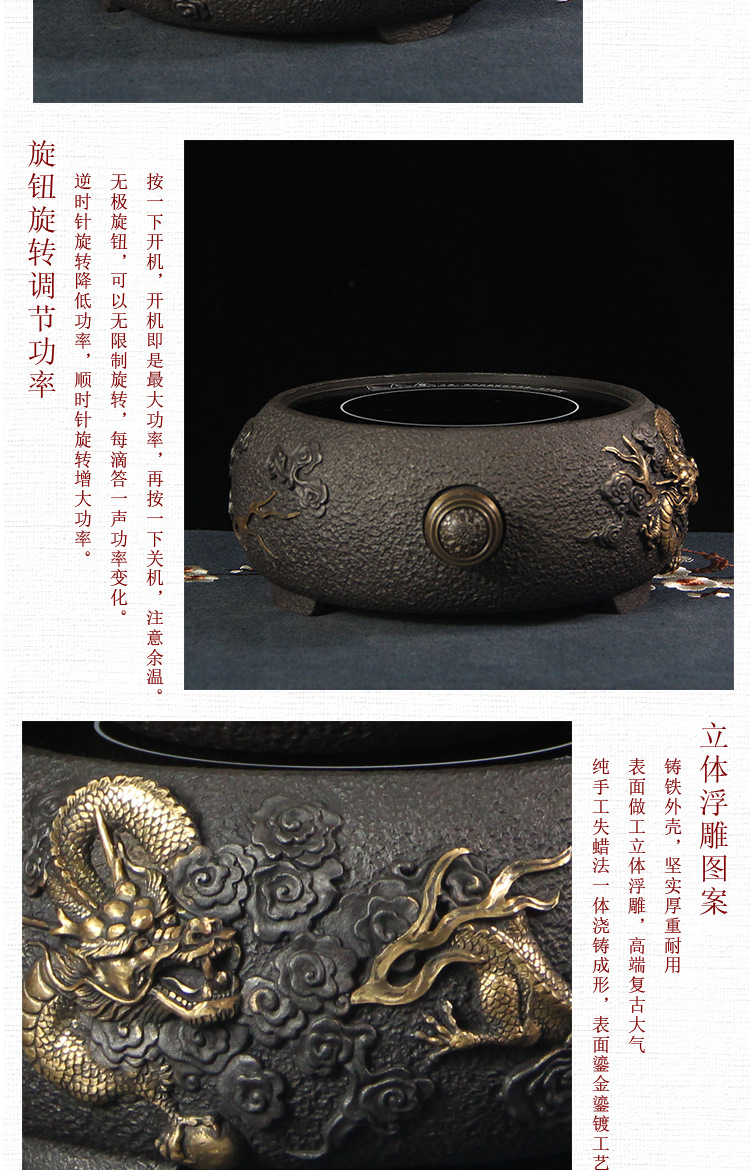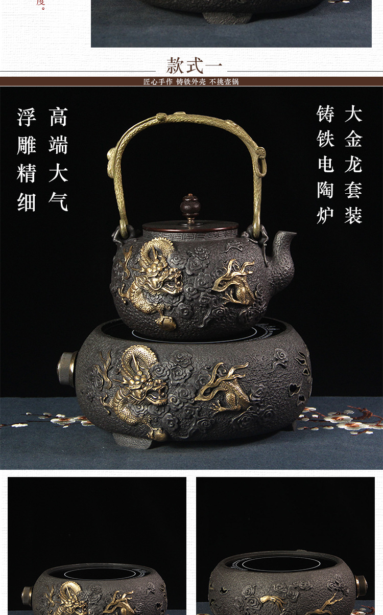 金龍蟠龍鋳鉄電気陶炉銅壺銀壺鋳鉄壺加熱用煮茶炉家庭用煮水茶器セット