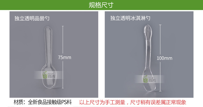 仕様 7.5cm透明試食スプーン,10cm透明試食スプーン,10cm独立装着試食スプーン100匹,7.5cm独立装着テイスティングスプーン100匹