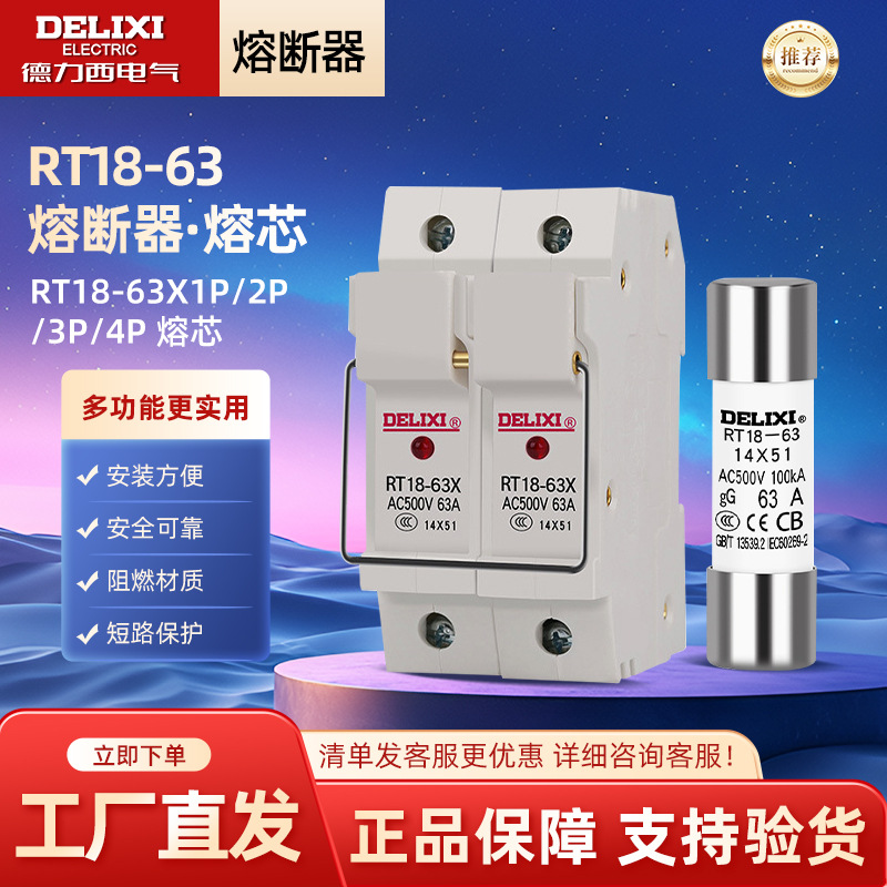 徳力西ヒューズ円筒形RT18-63Xランプ付き1p/2p/3p/4p溶融コアr 17 14*51 63a