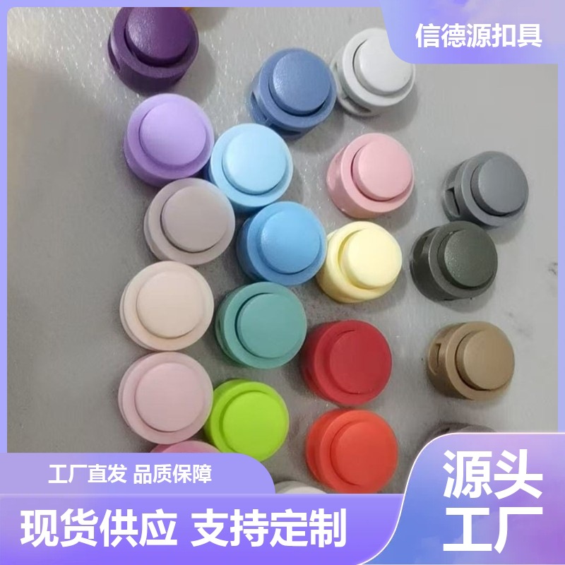 现货彩色蘑菇扣塑料弹簧扣地雷调节纽扣帽绳双孔穿绳卡扣厂家批发