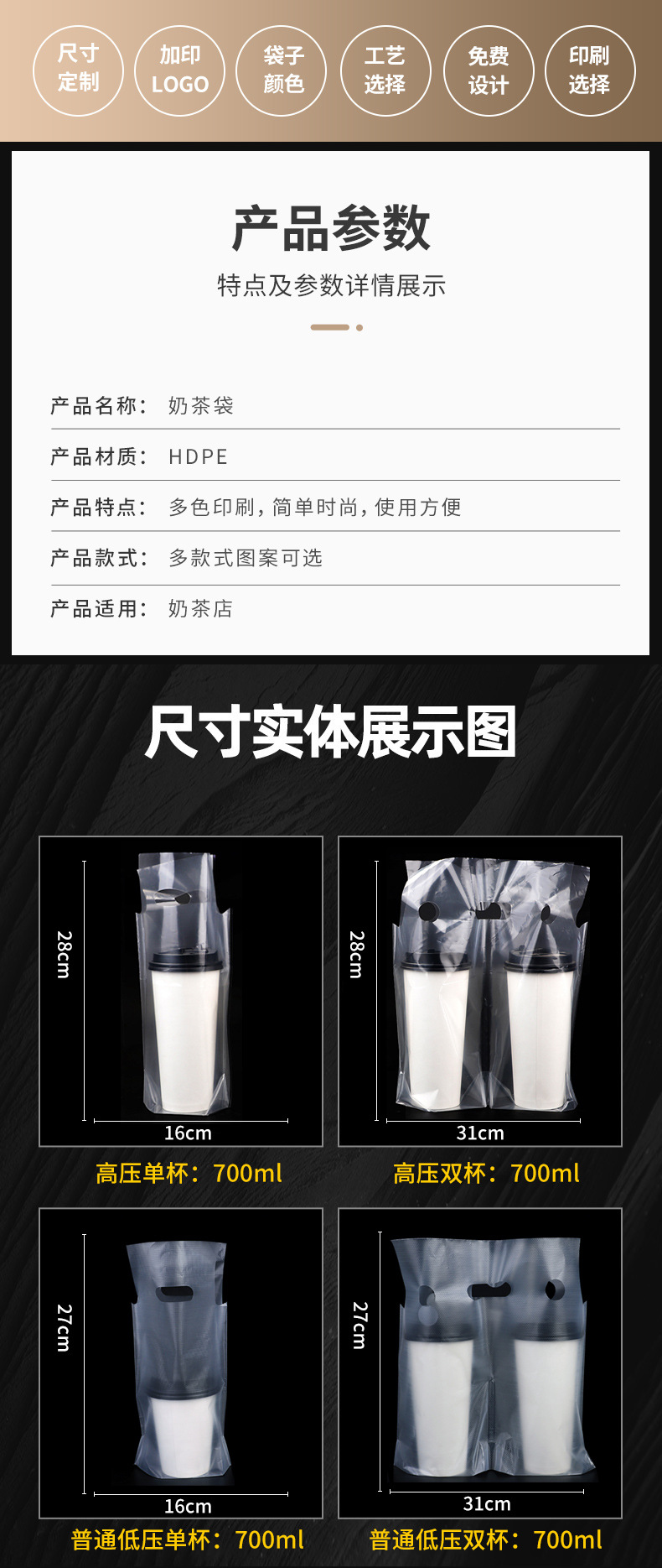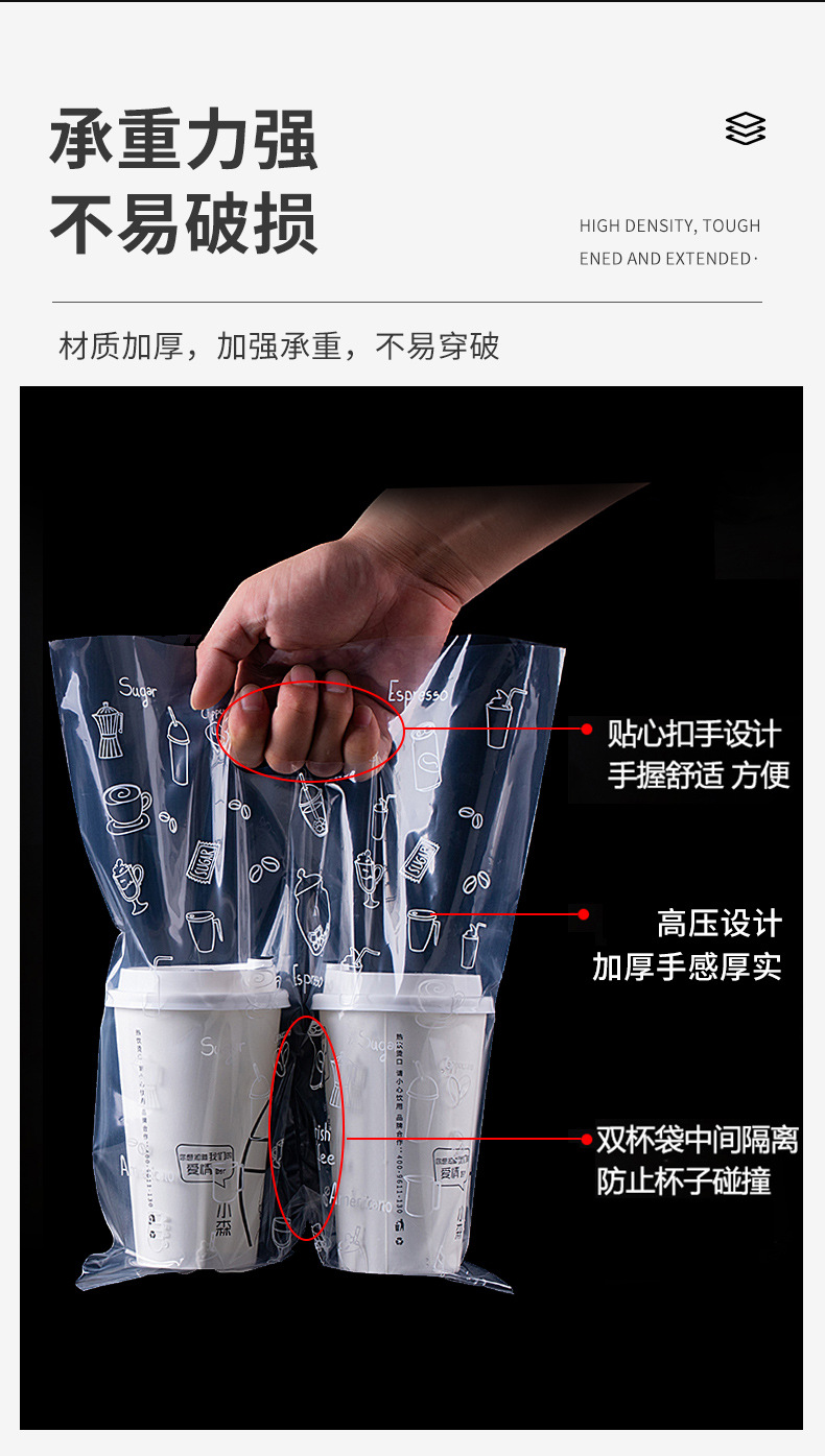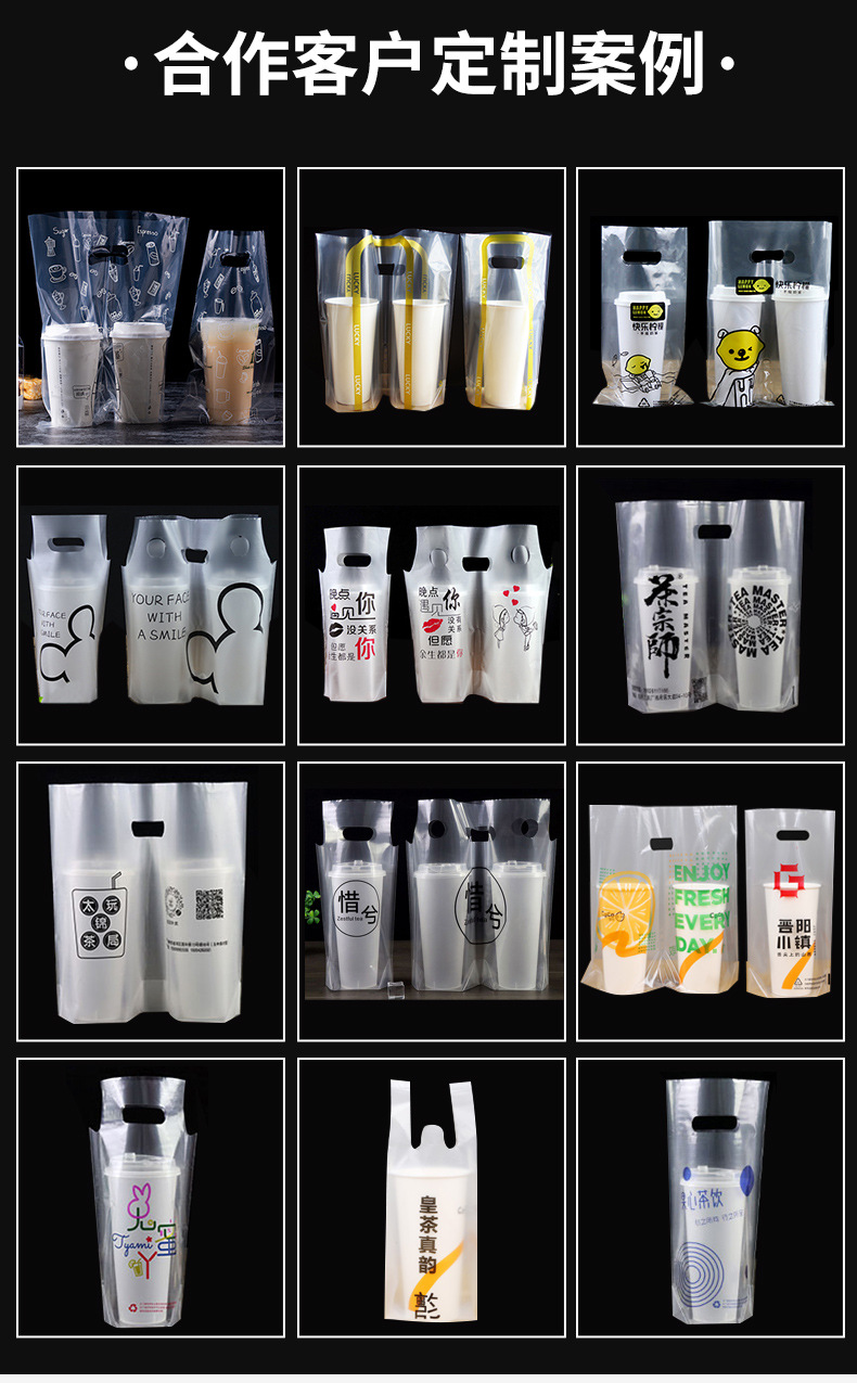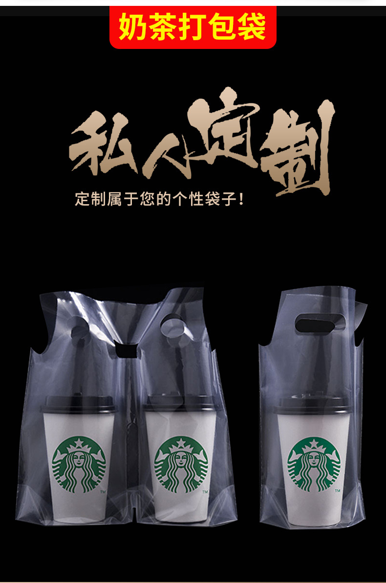 シングルカップ2杯液体ミルクティー包装袋使い捨て豆乳ジュースコーヒーの出前厚いプラスチック手提げ袋