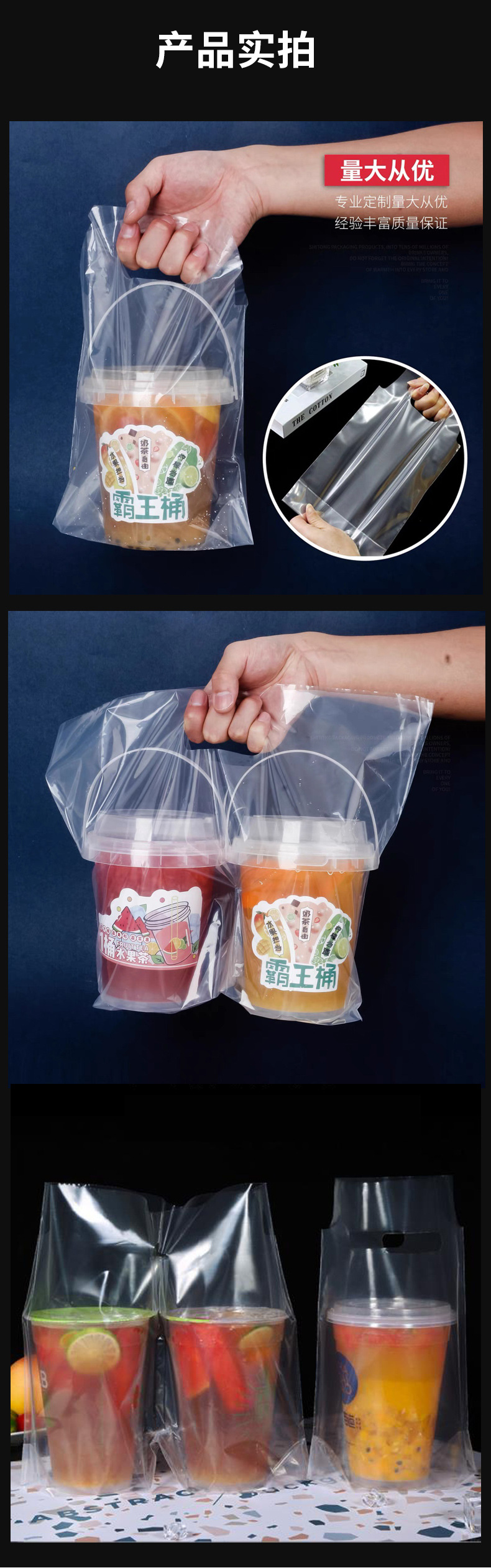 100匹のミルクティーバッグの出前シングル2杯コーヒージュース使い捨て覇王カップ氷粉手提げ袋卸売り