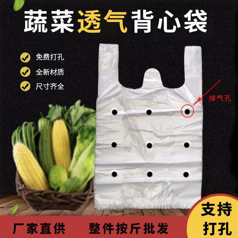 白いビニール袋の食品包装袋の穴を開けてベストバッグを出して包装袋の野菜の通気性の防曇袋の卸売りをします。