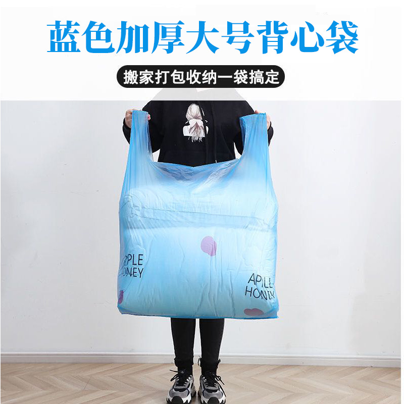 厚い青いベスト式のビニール袋の大きいサイズの包装袋の綿の収納袋の卸売りの手提げゴミ袋の家庭用