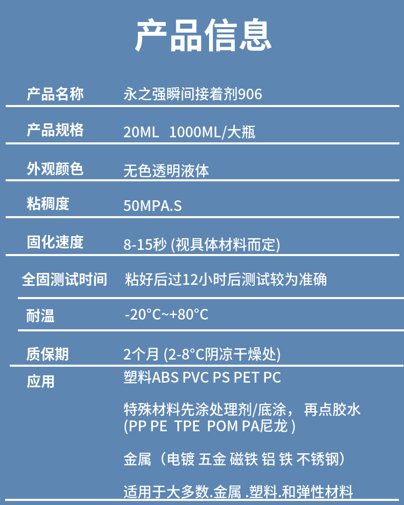 永之強496速乾金属接着剤496金属接着剤