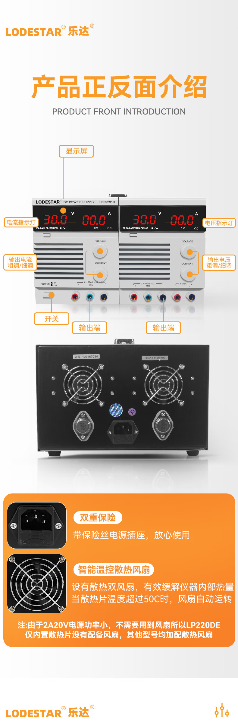 LODESTAR LPS322DII デュアルチャンネルデジタルディスプレイ調整可能直流安定化電源 32V2A デュアルラインリニア