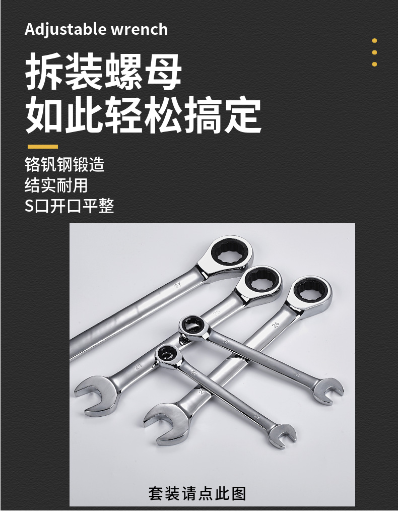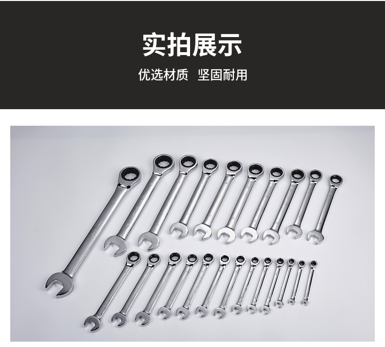 浙江メーカー直供8-22クロムバナジウム鋼180度活動ラチェットレンチセット活頭両用ラチェットレンチ