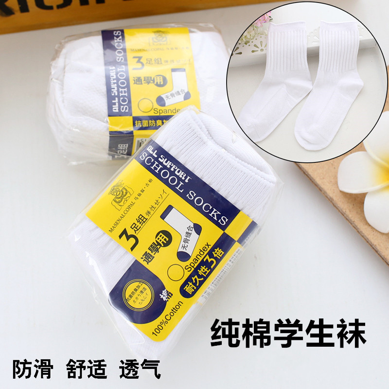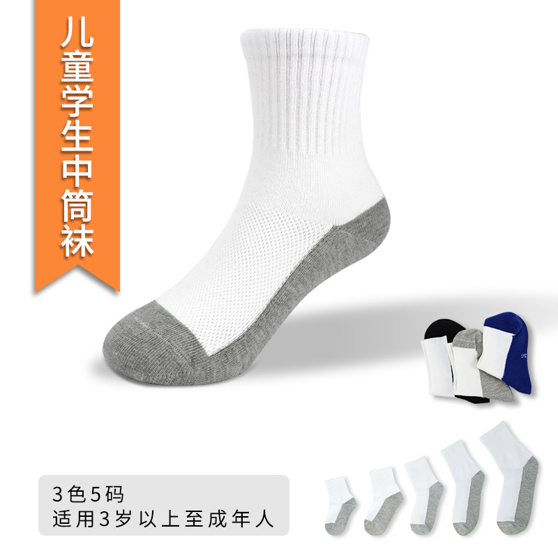白い子供用靴下男の子無地学生白靴下外国貿易卸売女子中学生スポーツソックス Zhuji