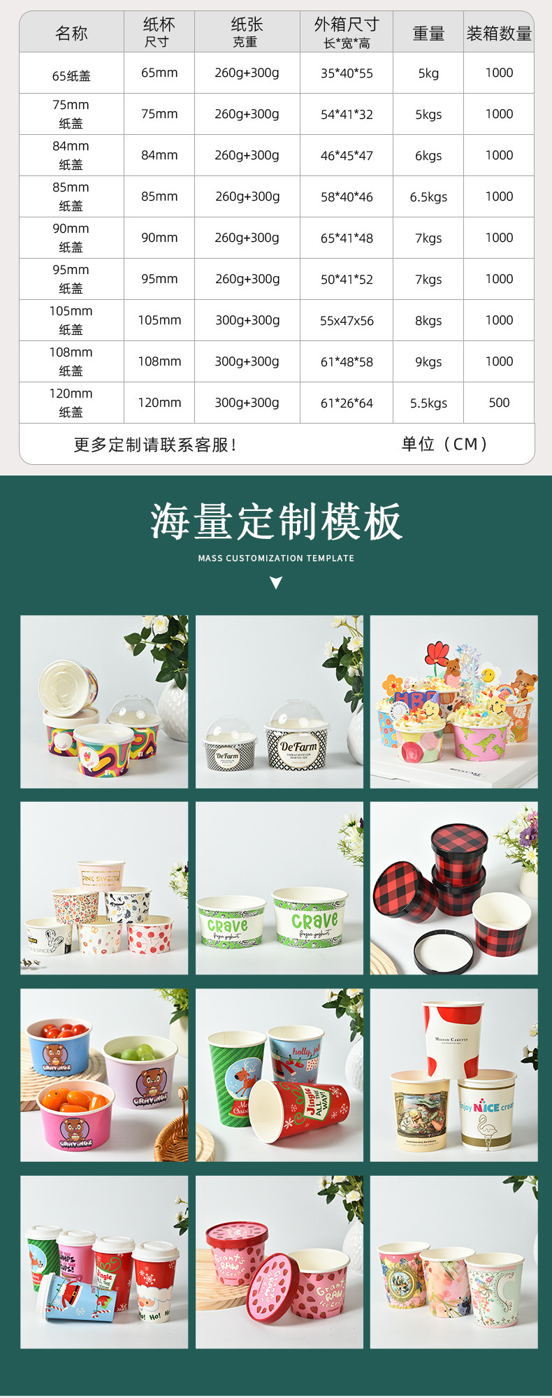 使い捨て紙コップ18oz 500mlアイスクリーム紙コップ厚いアイスクリームコップヨーグルト紙椀紙コップ紙蓋