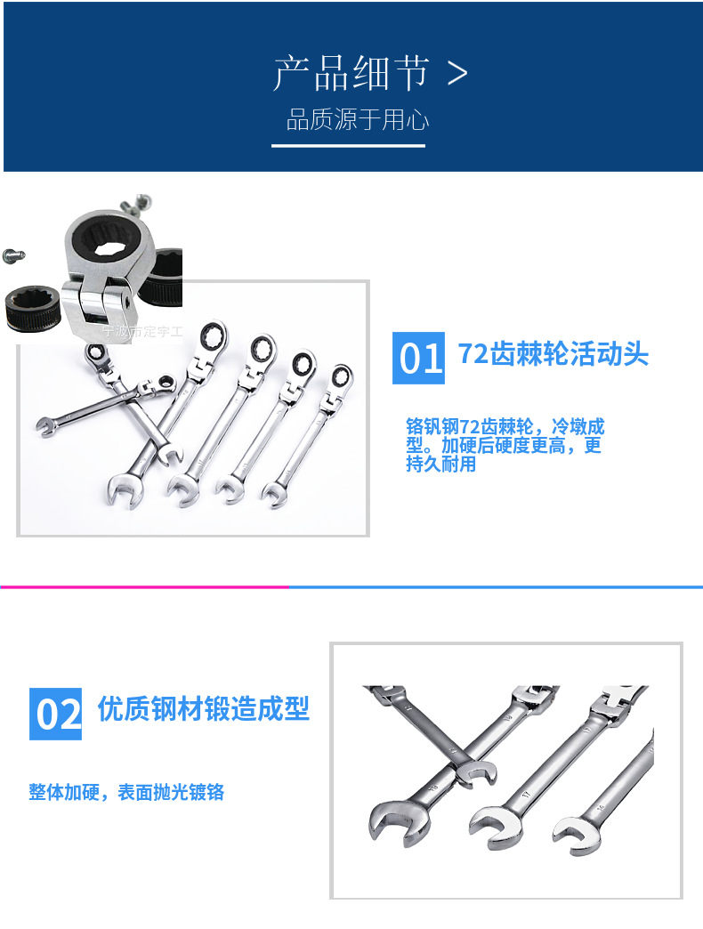 浙江メーカー直供8-22クロムバナジウム鋼180度活動ラチェットレンチセット活頭両用ラチェットレンチ