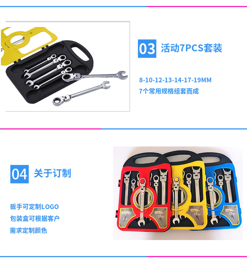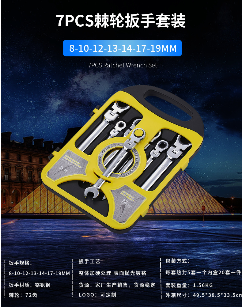 定宇工具スポット販売8-19mm 7pcs黄色プラスチックボックス活動ラチェットレンチセット