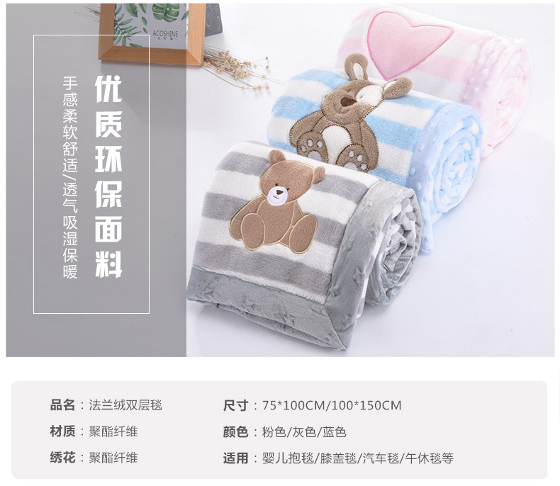 メーカー直販赤ちゃん刺繍フランネル小毛布漫画児童毛布フランネル毛布代発