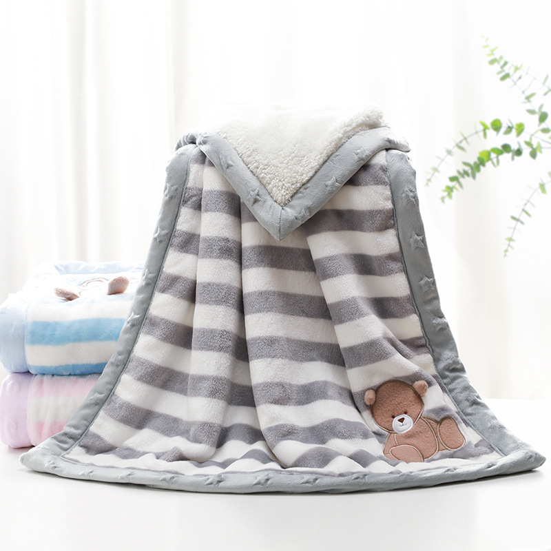 子供用ブランケット二層厚みのある幼稚園昼寝新生児クラウドブランケット秋と冬の両面コーラルベルベットキルト