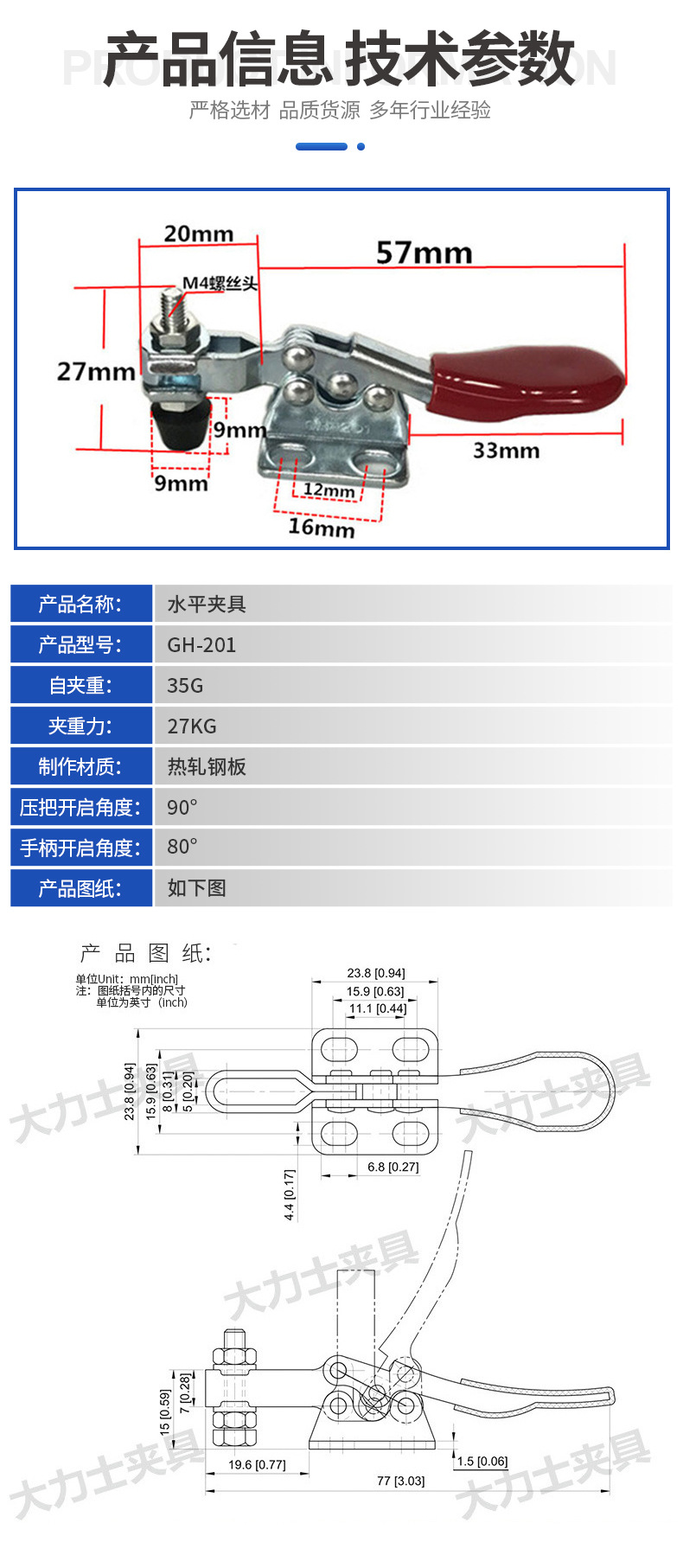 ヘラクレス快速治具水平式快速クランプGH-203-F-WDC溶接工装固定快速クランプ