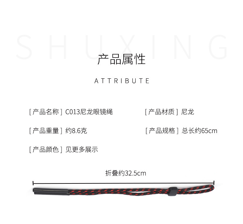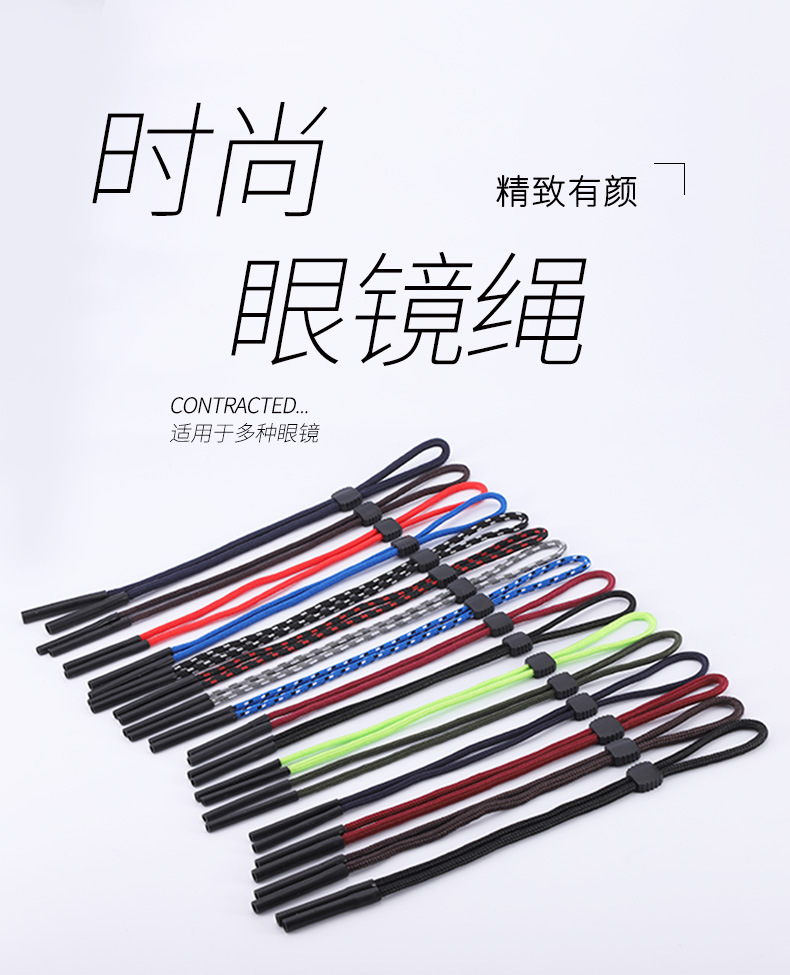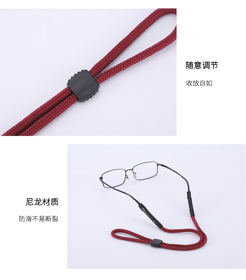 荧光色反光眼镜绳 漂流运动防丢眼镜链调节卡扣眼镜绑带双孔挂绳