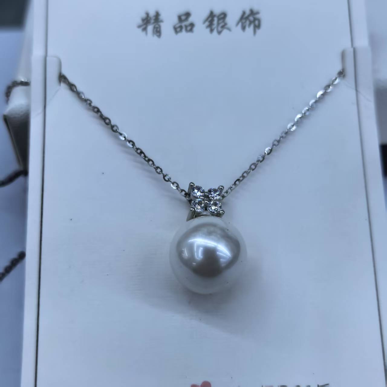 925 シルバーネックレス梅の花バックルシェルビーズネックレスプル調整ネックレスシンプルな気質韓国版鎖骨チェーンネックレス