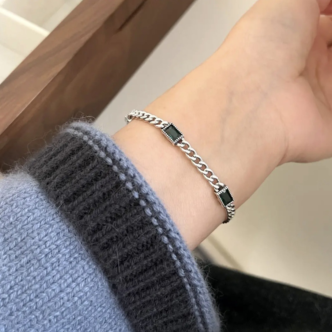 甘いクールs925純銀ブレスレット韓国ins風シンプルで古い個性的な緑のドリル間隔を作っています。