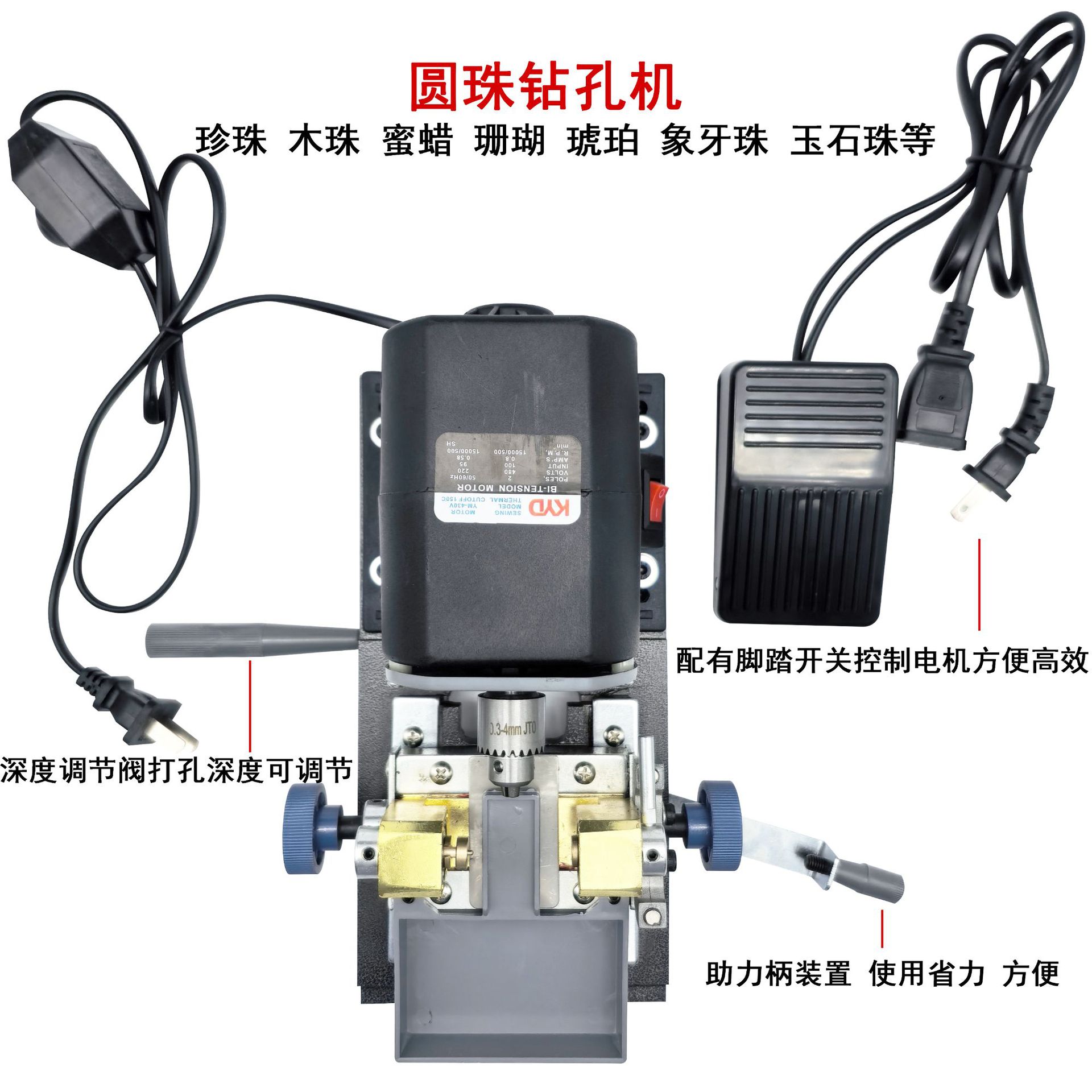 配有脚踏随你控制转速让你随心应手.工作头可更换大小打孔针头.最大夹头直径¢4mm