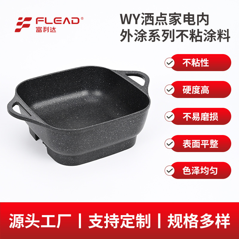 1;食品用具上,电饭锅、压力锅、方锅、煎锅、油炸锅、炒锅、烤盘、烤箱、抽油烟机、食品过滤网、烧烤架、三明治、牛扒盘、电水壶等起到不粘、防油烟,易清洁作用;