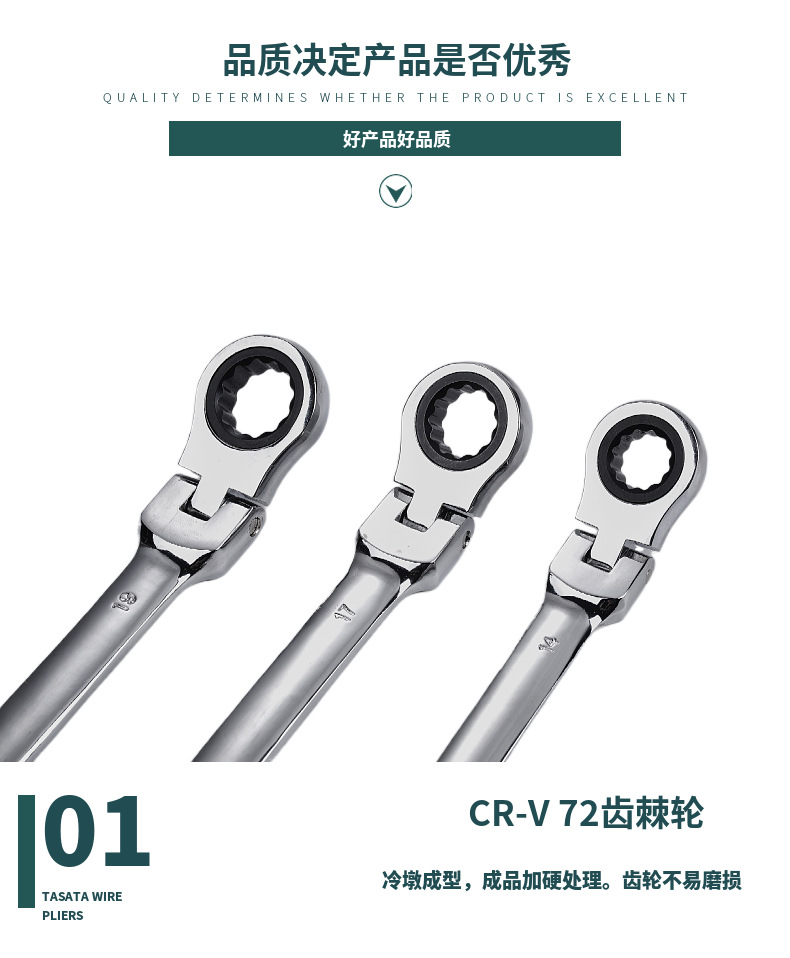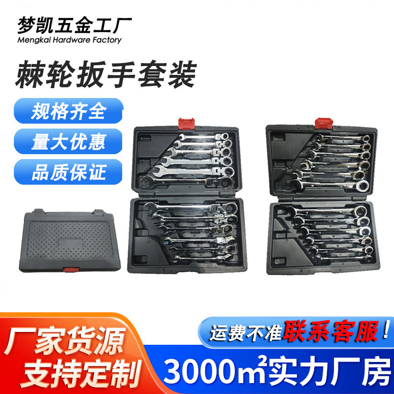 浙江メーカー直供8-22クロムバナジウム鋼180度活動ラチェットレンチセット活頭両用ラチェットレンチ