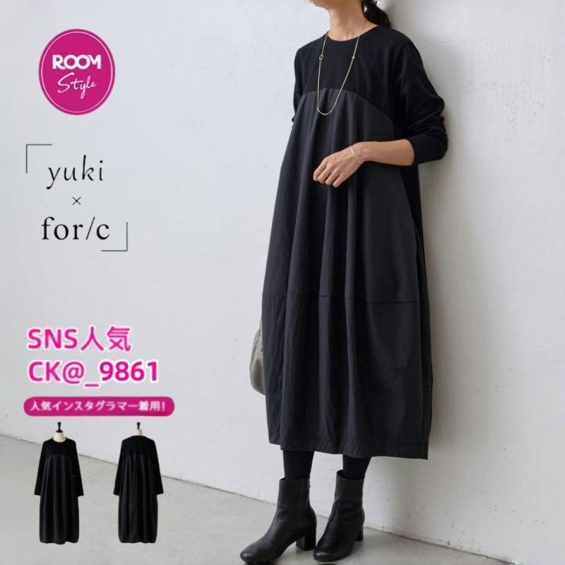 現物日系2025春の新型純色丸首ニット大ポケットワンピース女性