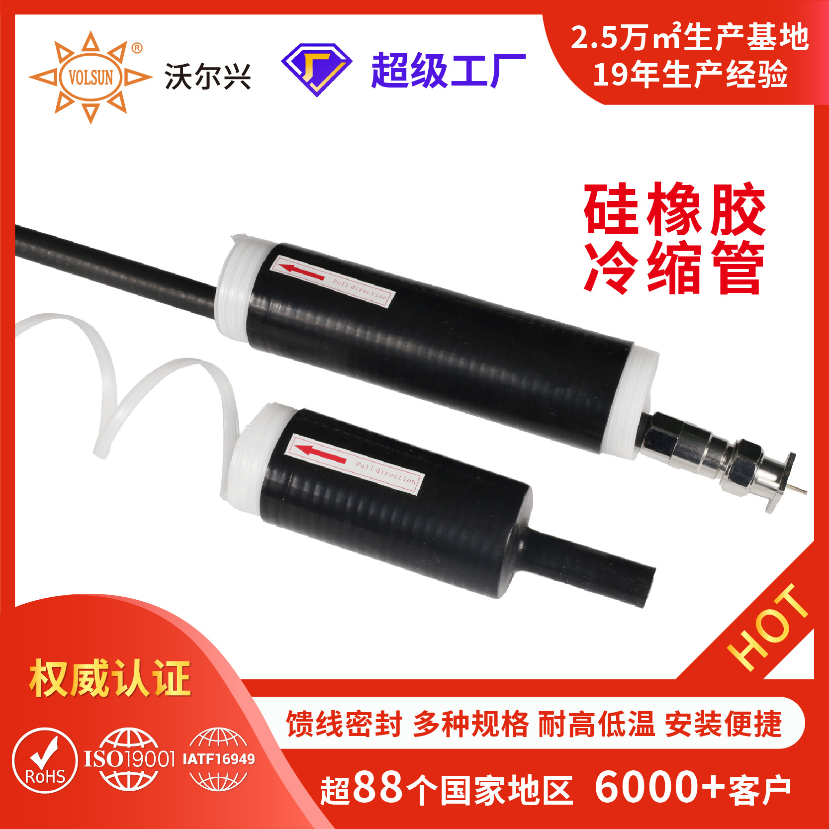 三元乙丙橡胶(EPDM)冷缩管是一种预先扩张在可抽支撑管上的橡胶绝缘套管,在使用时只需定位后抽去支撑管即可,利用其径向压力形成包覆,起到防水、防潮密封作用。具有优异的耐天候、耐酸碱性能,达到同呼吸密封的效果,是通讯电缆、同轴电缆、中低压电力电缆的理想密封产品。