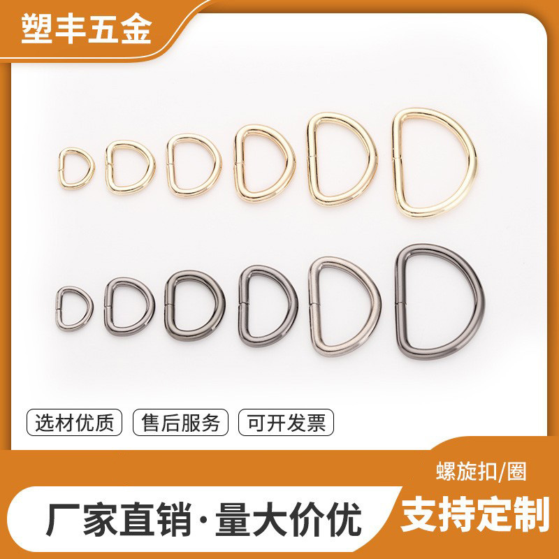 本公司供应各种规格和颜色的金属D型环,圆形,三角形等环,有铁,铜,合金,塑料,尼龙等等材质,也可以来样,本公司是厂家直销,也可以小批量采购,欢迎你的来电洽谈!