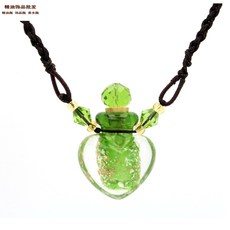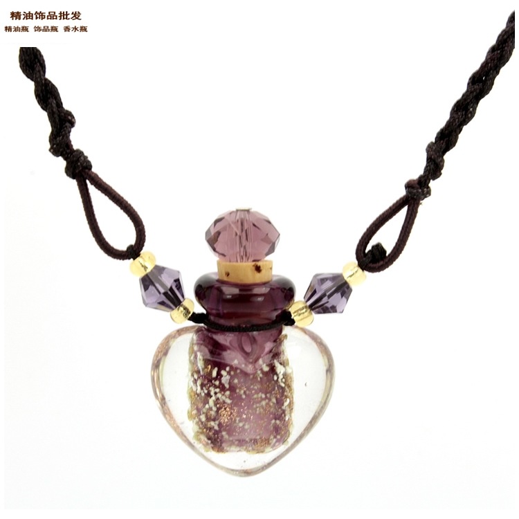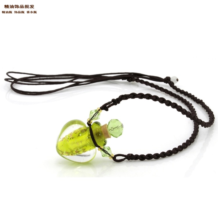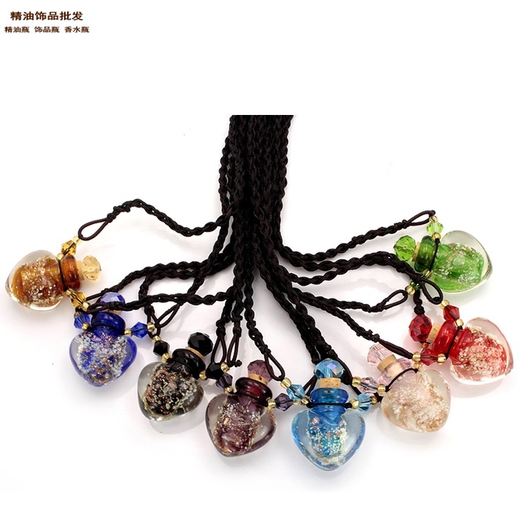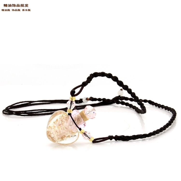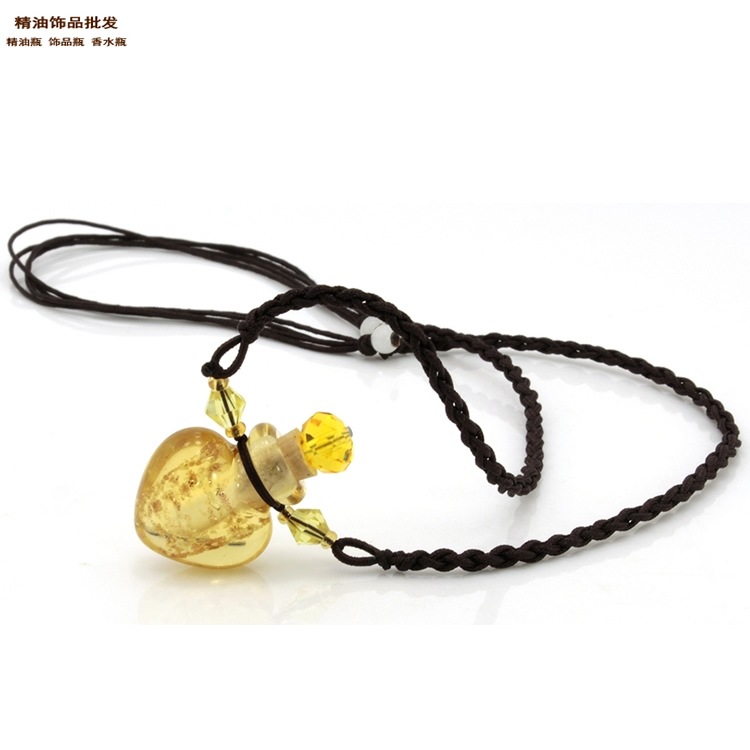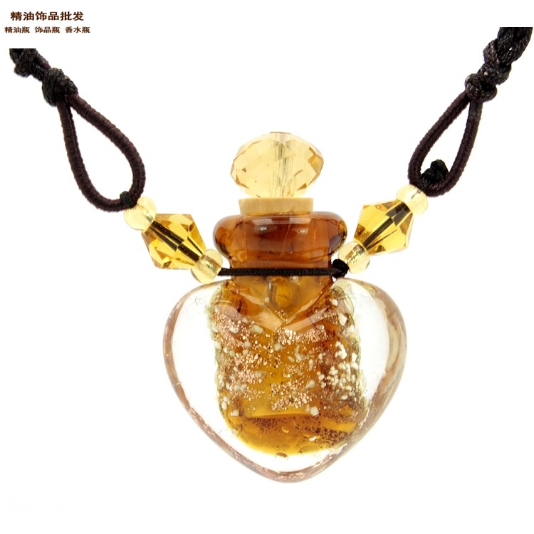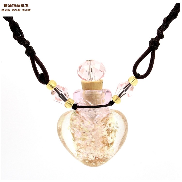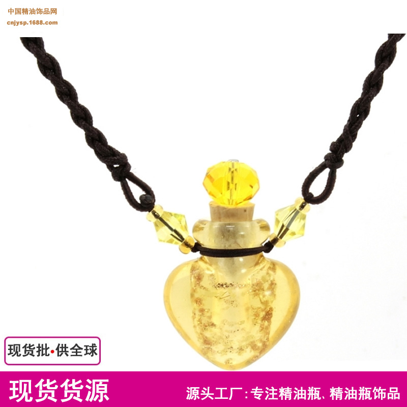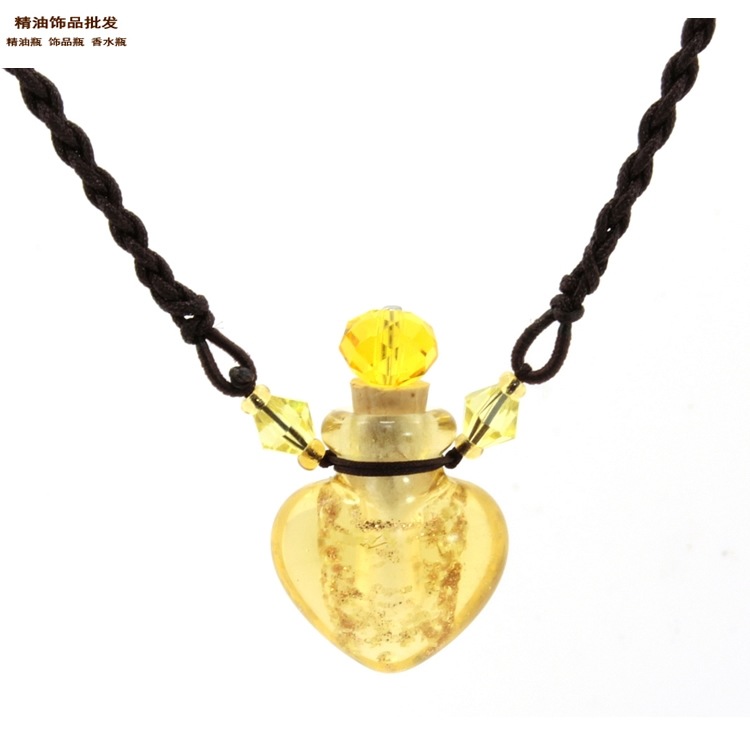 薇妮饰品 批发心形金色流沙款琉璃精油瓶项链吊坠 配细双扣绳 南女通用