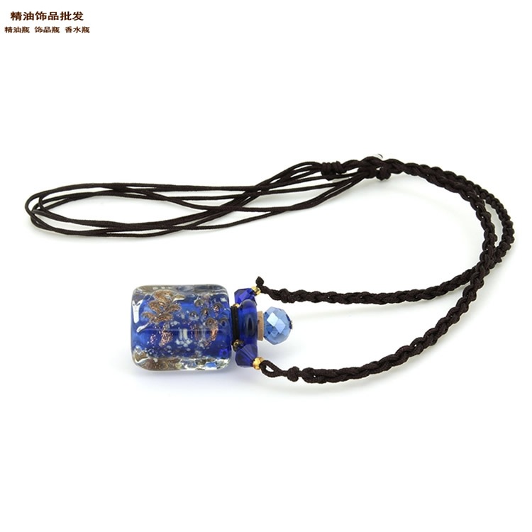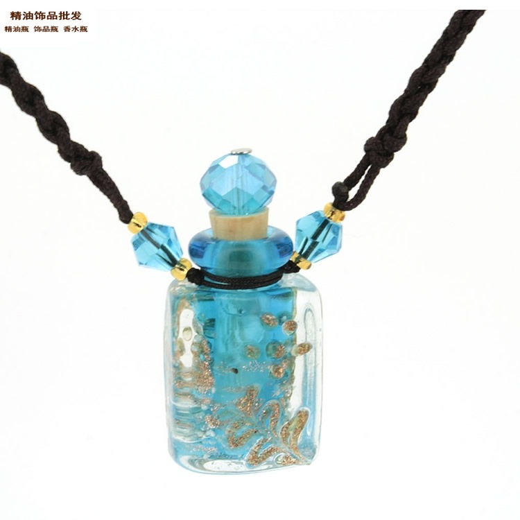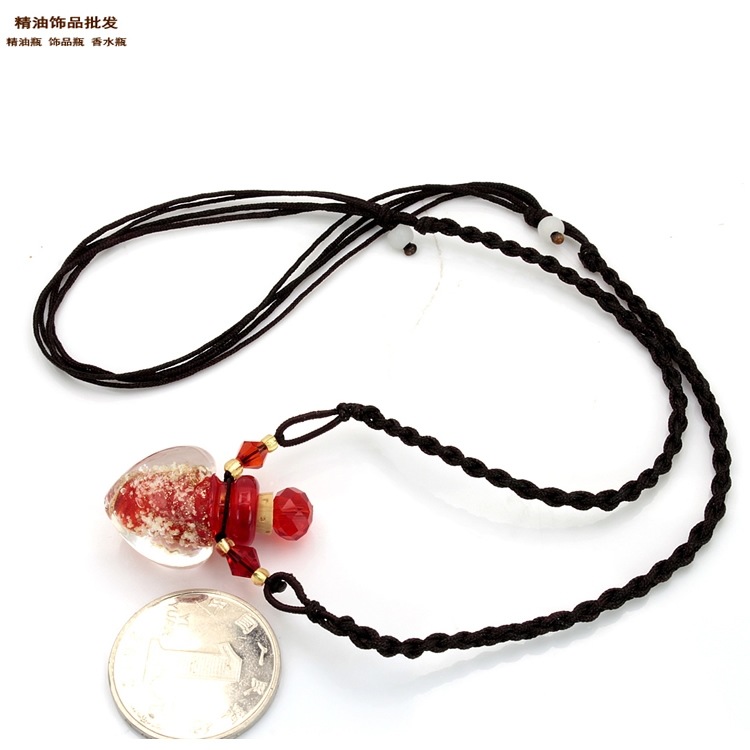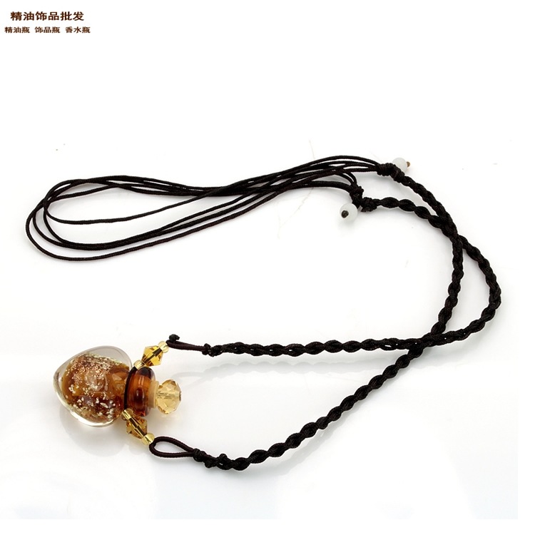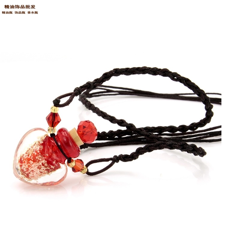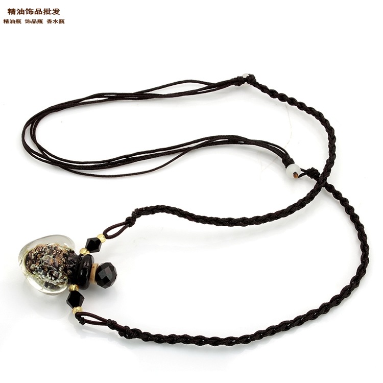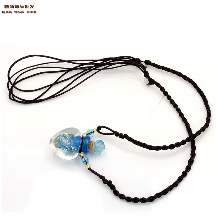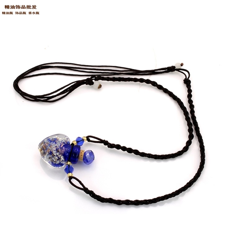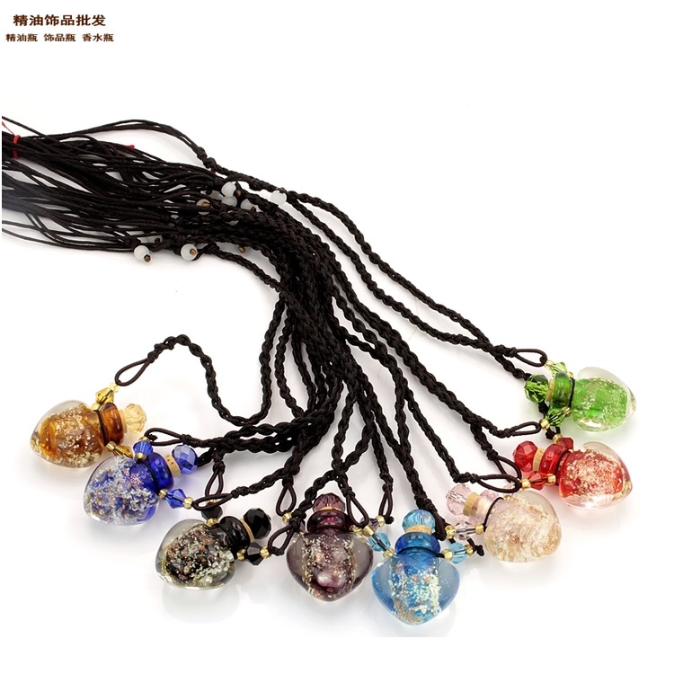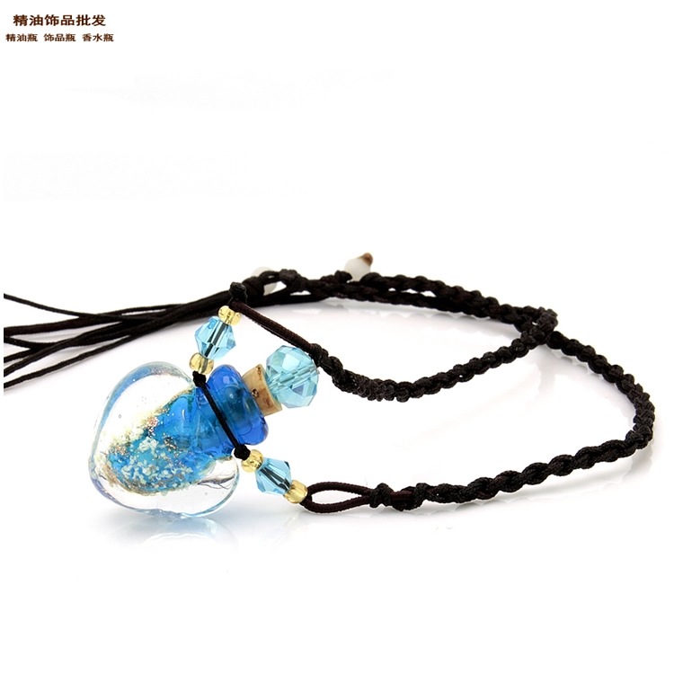 薇妮饰品 批发心形金色流沙款琉璃精油瓶项链吊坠 配细双扣绳 南女通用