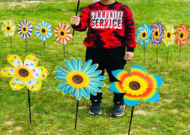 大風車卸売り児童露店観光地区屋外装飾運動会道具ヒマワリカラープラスチック風車