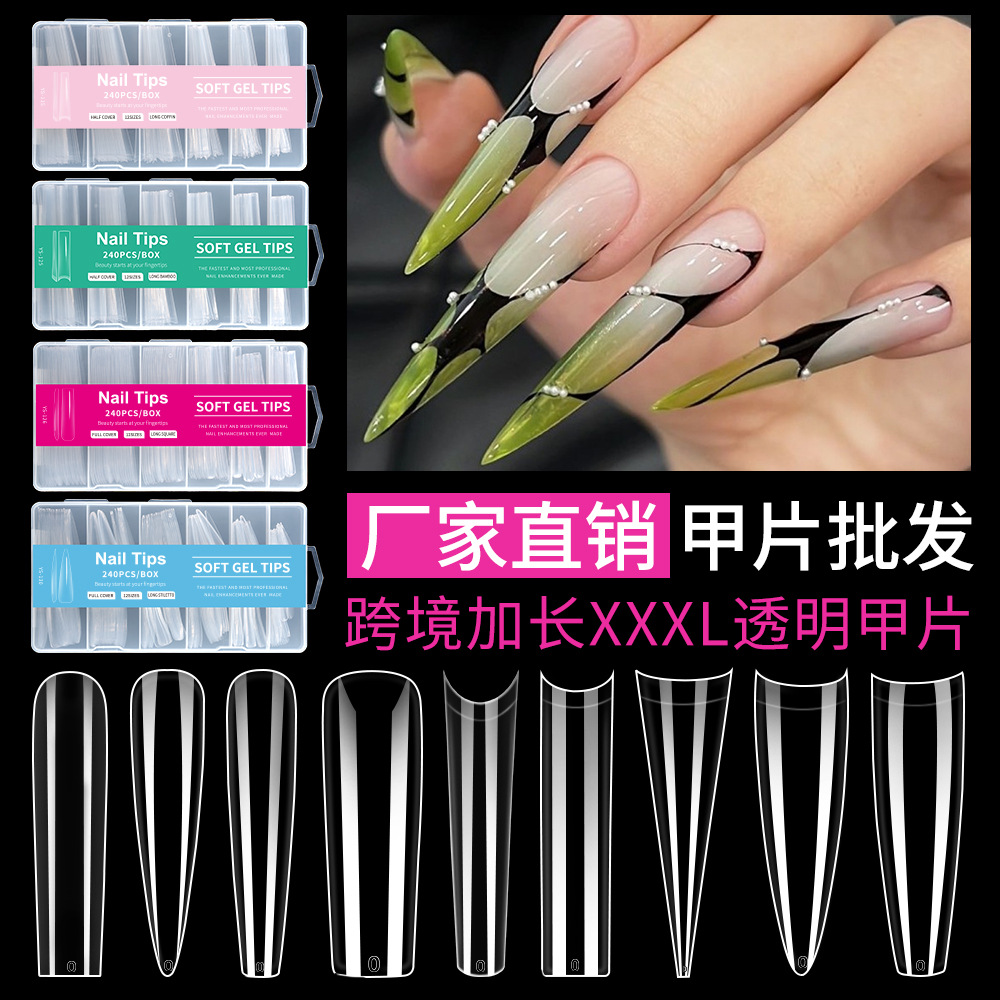 美甲500片盒装甲片 全贴甲片 指甲贴片 假指甲片 白色自然透明色