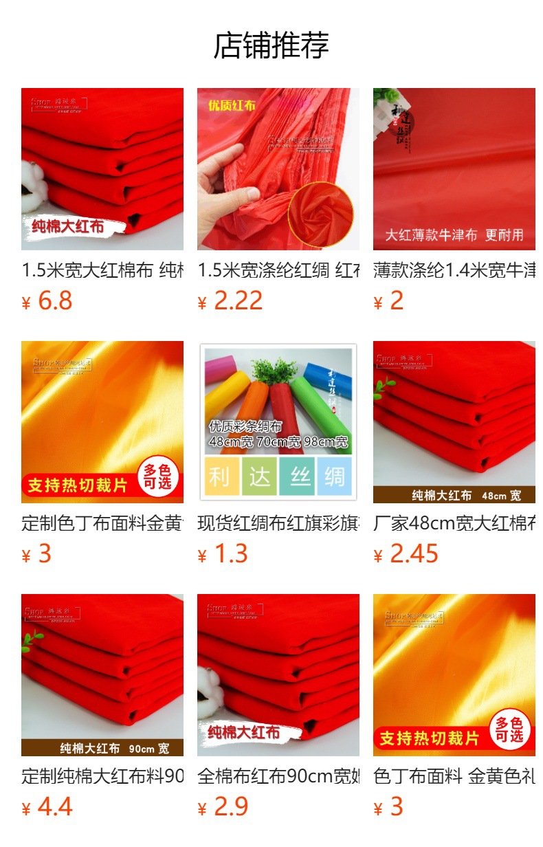 大紅布ポリエステル紅布紅布紅綿布開基結婚祝い民俗吉祥生地カット開業