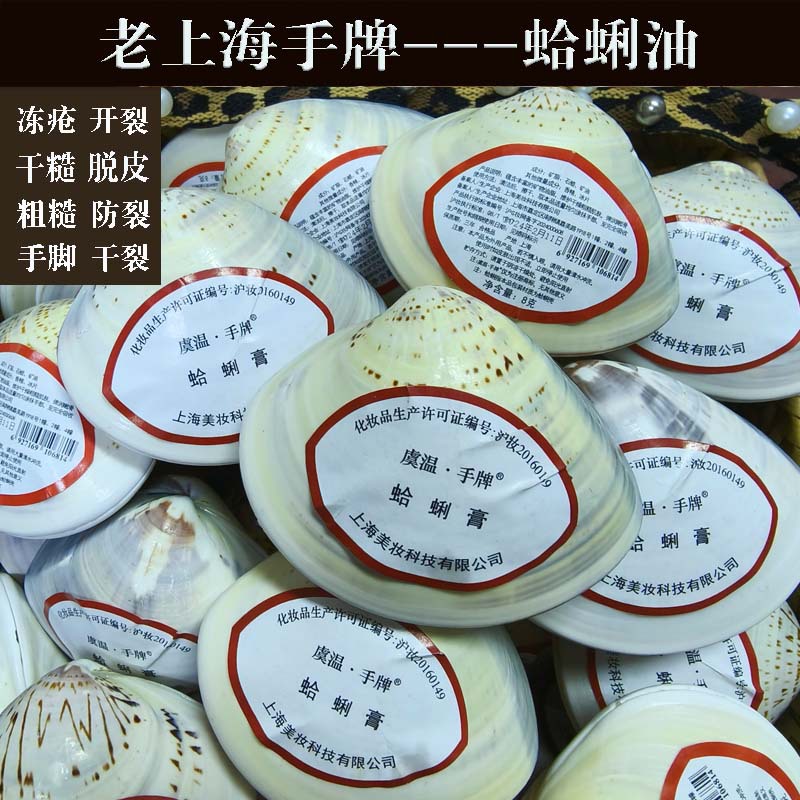 产品说明:蛤蜊油以包装这种油性护肤品的蛤蜊则得名,蛤蜊壳是一种沿海生长的贝壳生物的外壳。蛤蜊油的规格是以蛤蜊壳的大小来区分的。各地所产蛤蜊油的规格和计算方法不同。半固状膏体,全油型非乳化体。用蛤蜊壳作包装容器。