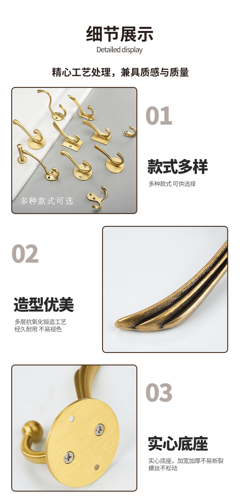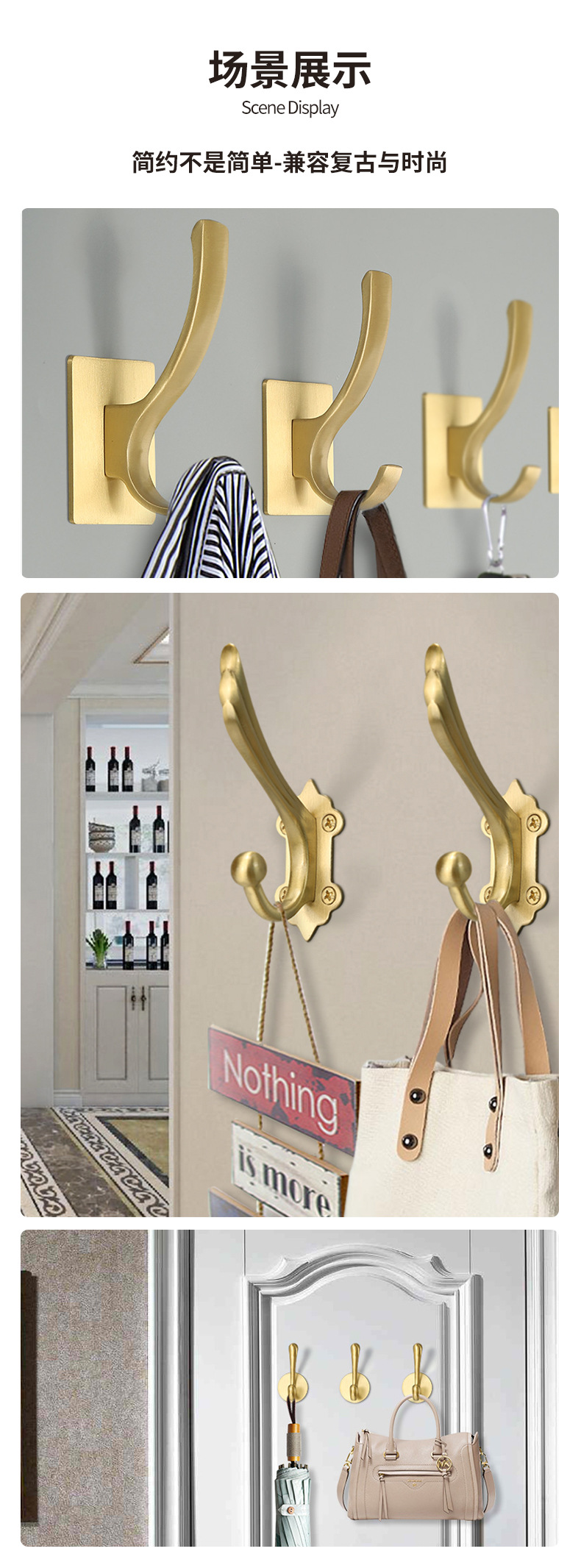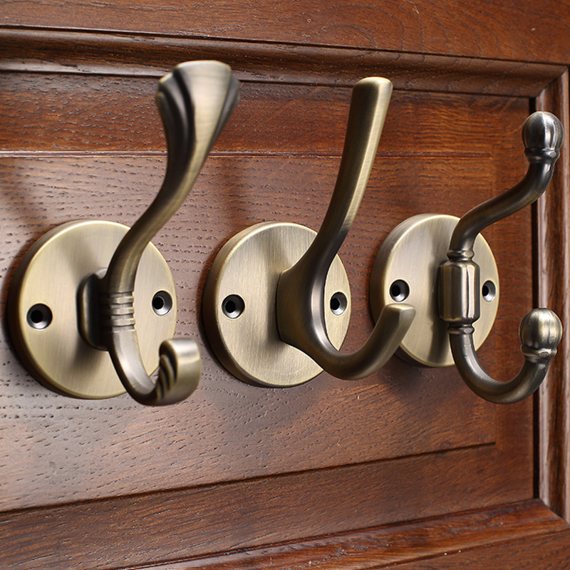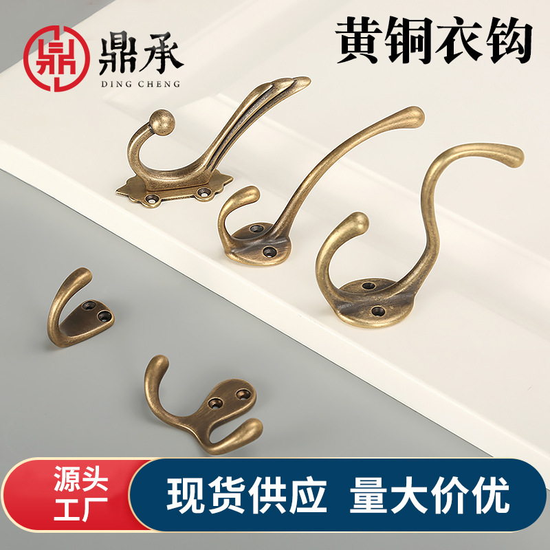 批发黄铜五金上下衣钩衣帽钩中式实心挂衣钩实木挂钩玄关复古衣勾