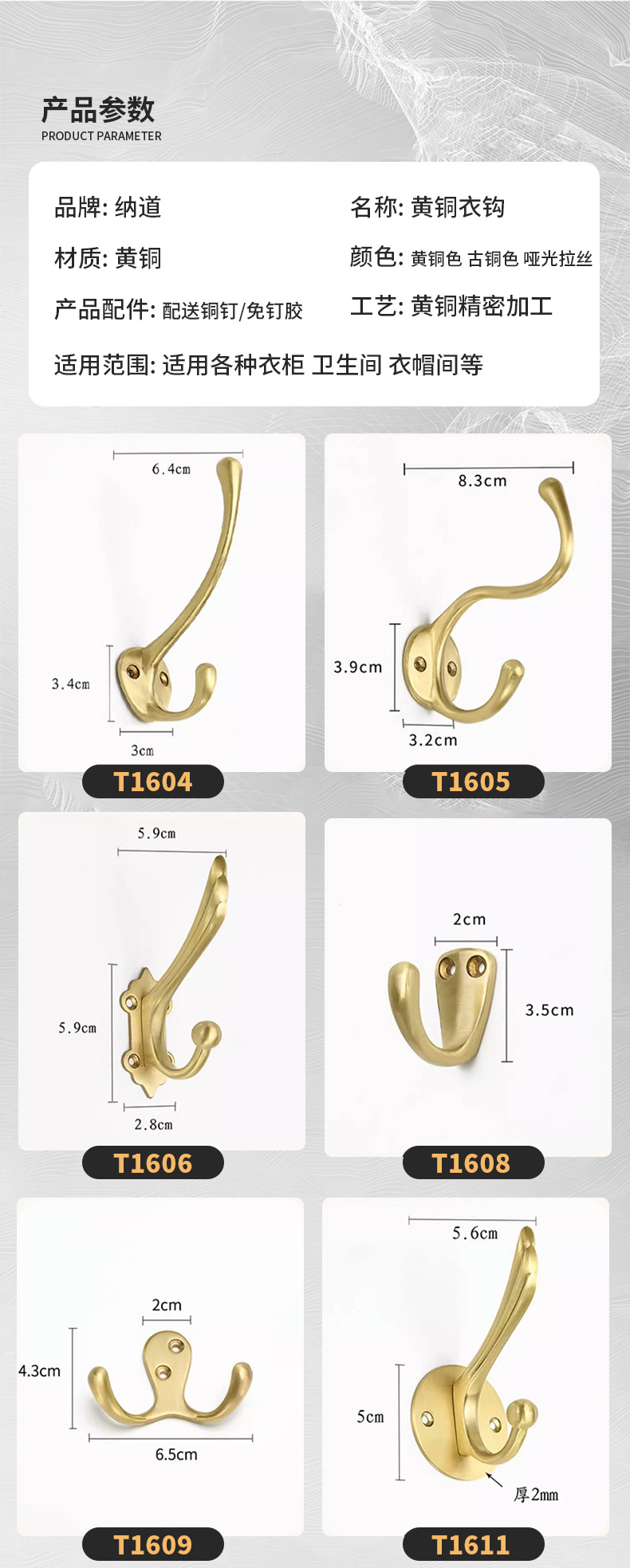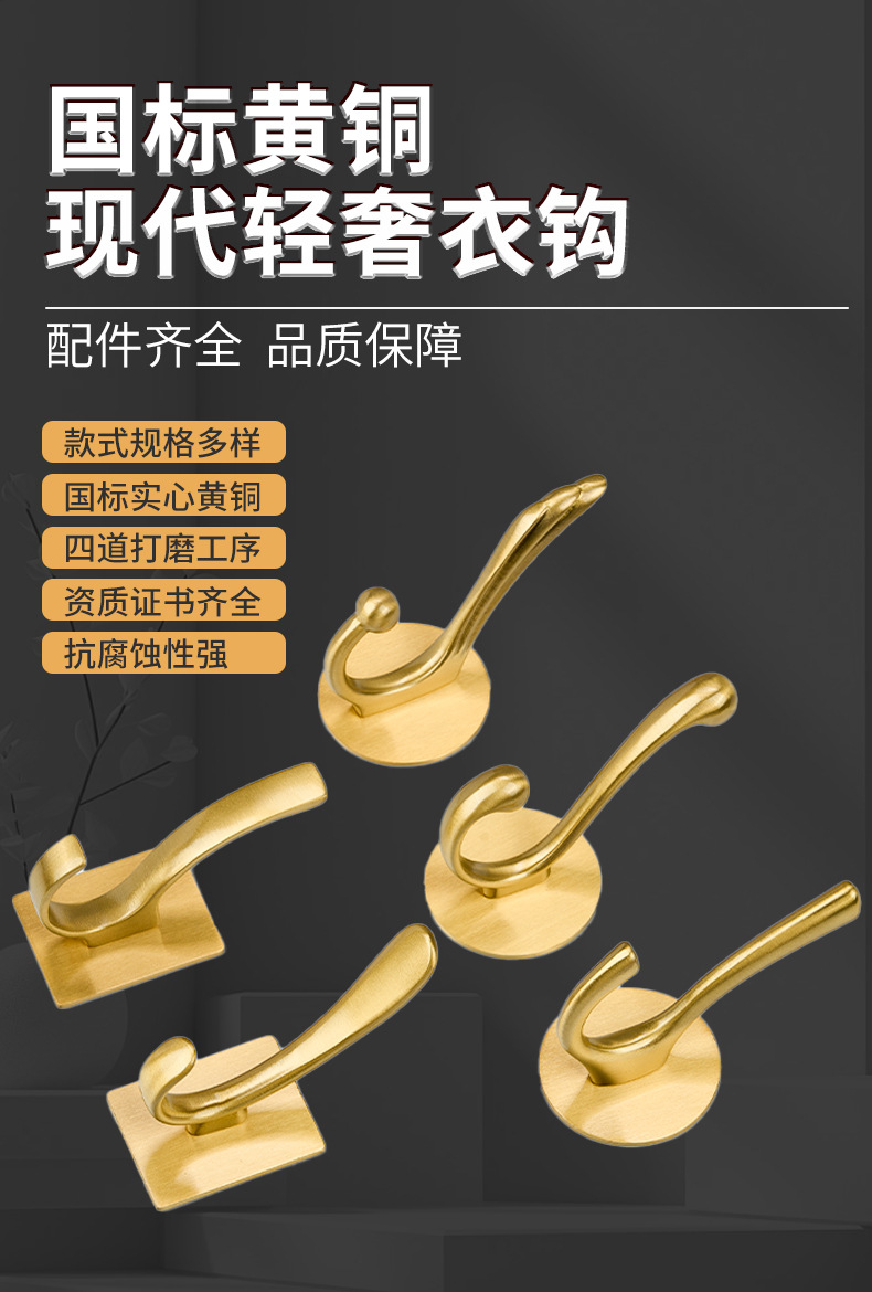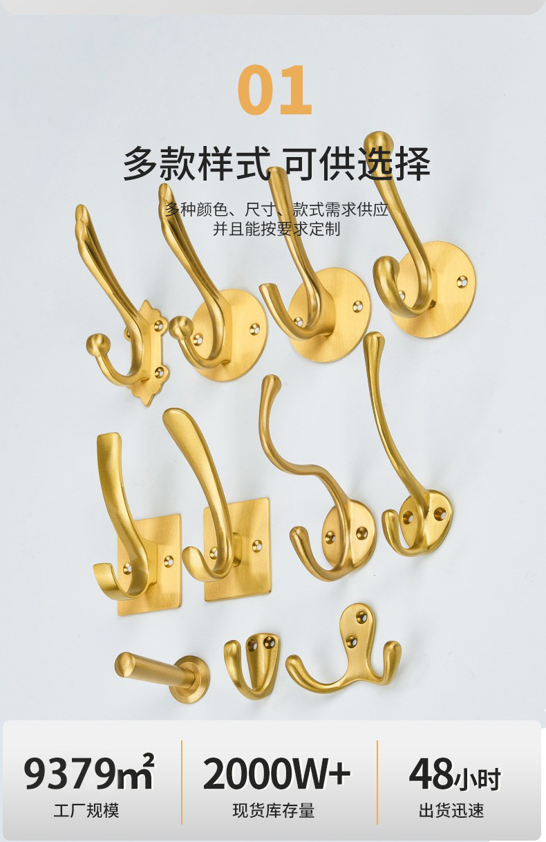 批发黄铜五金上下衣钩衣帽钩中式实心挂衣钩实木挂钩玄关复古衣勾