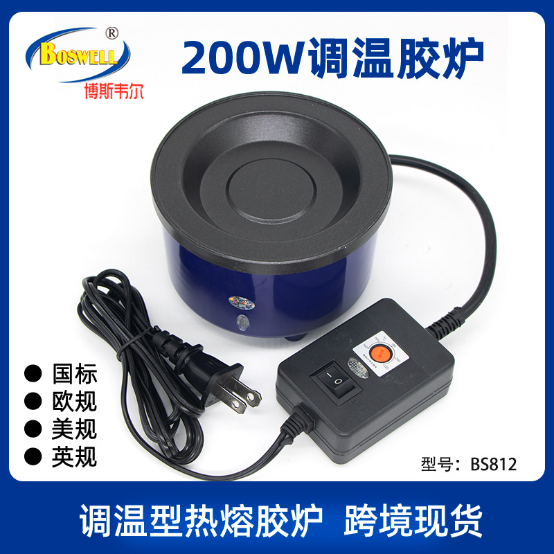 【特点及应用】热熔胶炉(又名接发器,驳发器,电热炉)采用高科技陶瓷PTC热敏电阻器作为发热元件,升温速度快,恒温准确,使用寿命长。电气绝缘强度在3750V/分钟时不被击穿,耐电压330V/3分钟。锅体采用优质环保合金铝经过特殊电镀处理,具有不粘锅的优点.电源线长度为1.5米,胶炉外壳采用耐高温工程塑料,绝缘性能好,安全可靠,是发制品行业,胶花、绢花厂,圣诞饰品厂,学校手工工艺教学,毛绒玩具,皮革布料,食品包装,彩盒包装,电子电器等,操作简单方便,实用性很强,特别是发制品生产的理想加工工具。