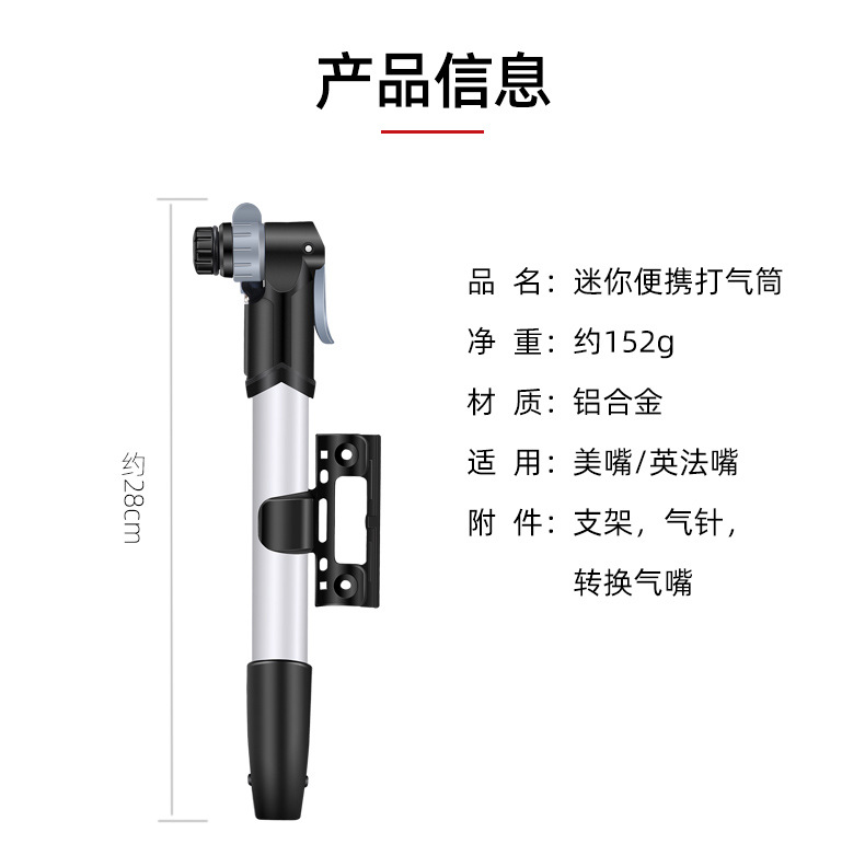 強力神ポータブルアルミニウム合金空気入れポンプ自転車ミニ空気入れ電気自動車ボール類小型空気入れ