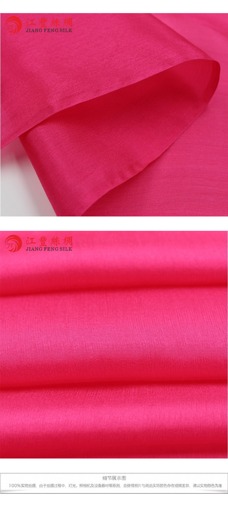 受摄影器材,环境以及不同显示器的工艺差异影响,实物与照片无可避免的存在小量色差,具体颜色以实物为准。面料染色过程受气温,电压,染料差异影响,不同批次的货品也会存在色差,我们承诺在您单次下单的货物里无色差,但分次提货无法达到100%颜色一致。请充分预算您的面料需求量,避免色差。