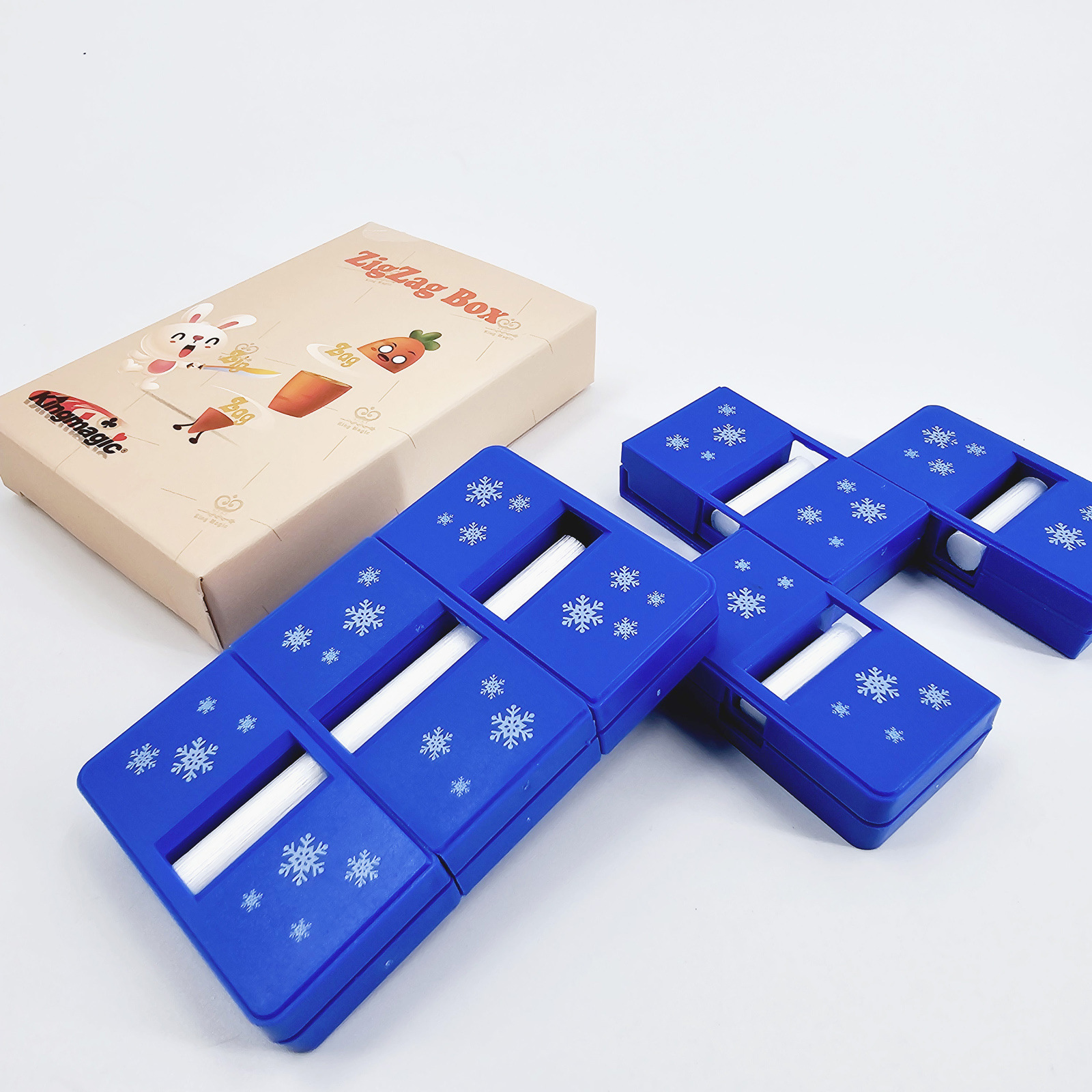 魔术效果:魔术师拿出一根小棒(或烟)给观众检查后,放在魔术盒内将盒子一拉,小棒分成三段,然后将三段在给观众检查,之后在放回盒内,在将盒子复原,施法后,断成三段的小棒居然复原了,复原后可以再次给观众检查。