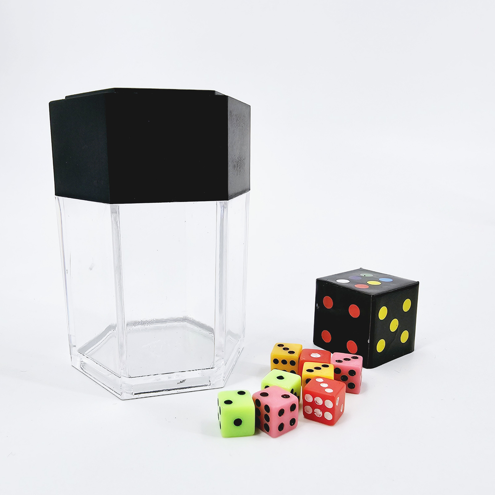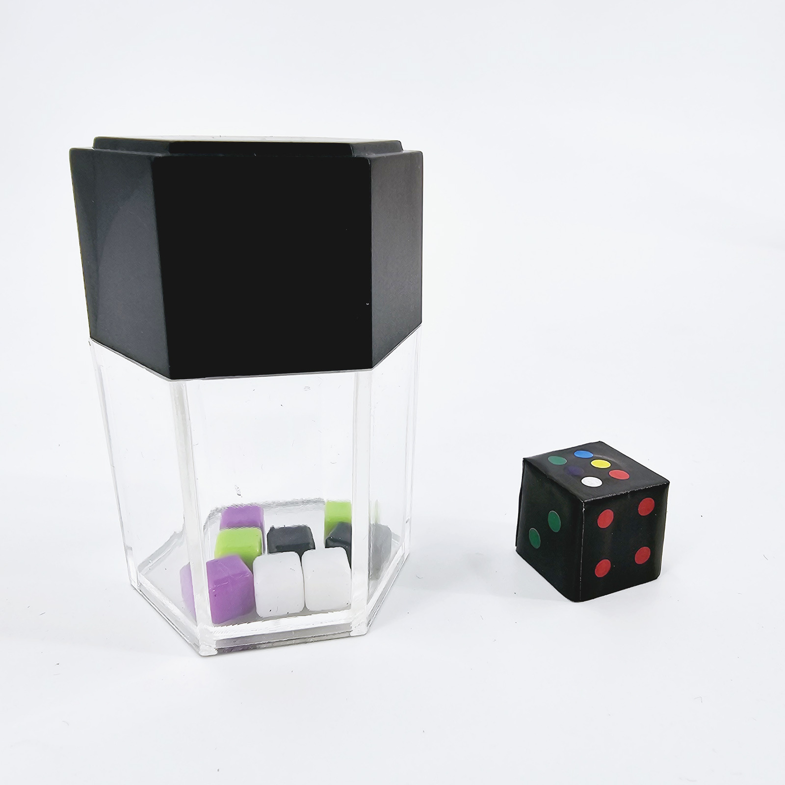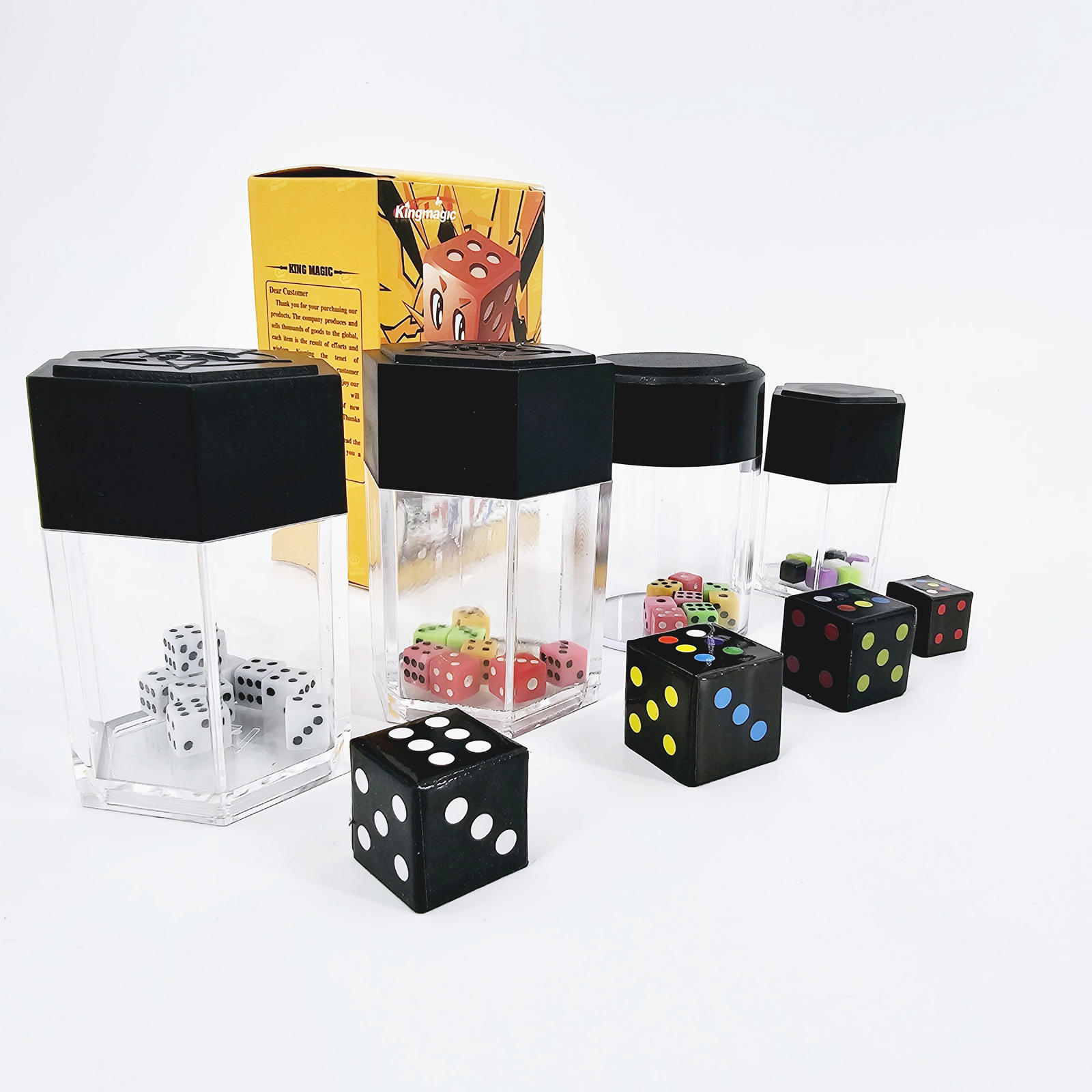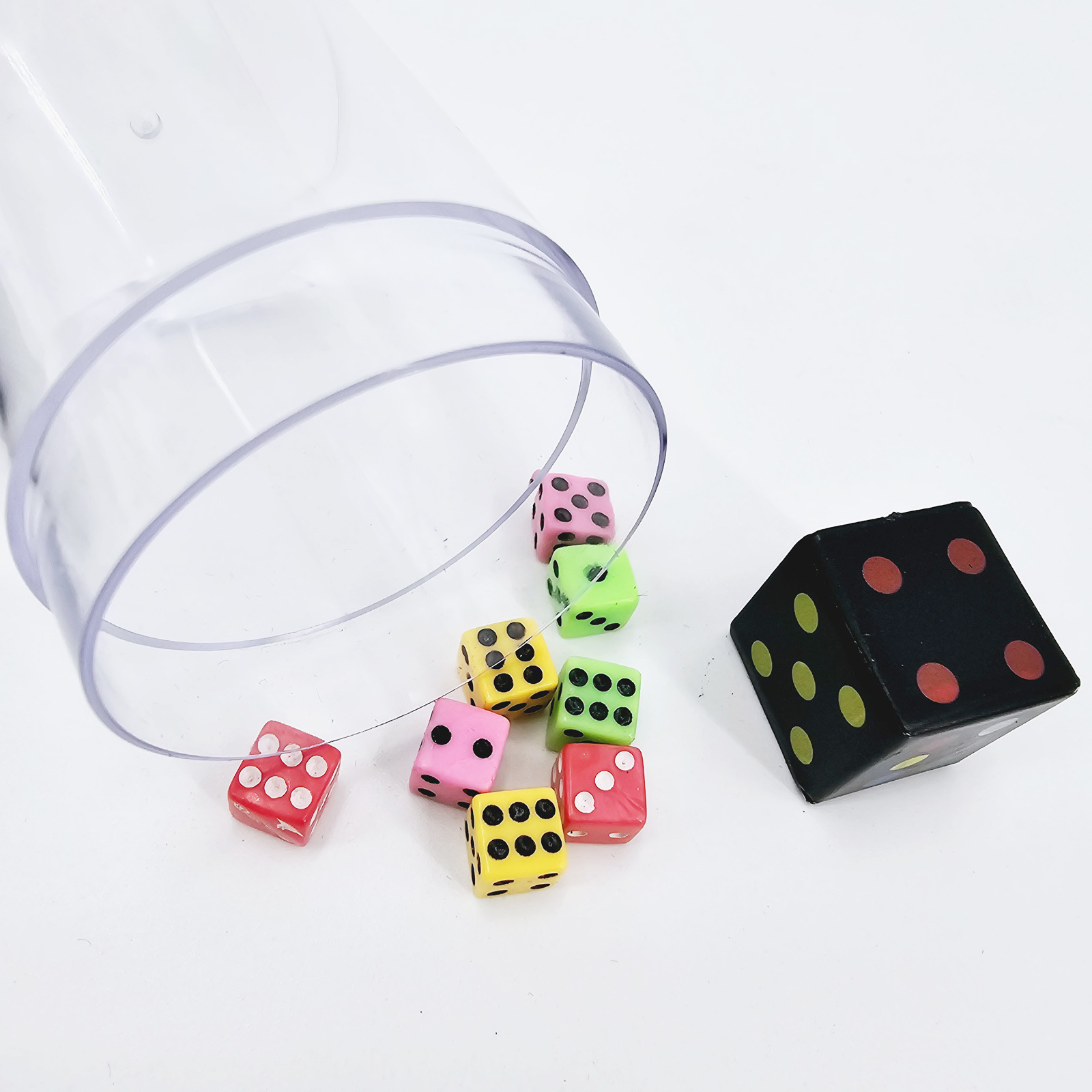 一颗普通的黑色大骰子放在透明盒中,魔术师一摇透明盒,大骰子瞬间变成了8颗小的白色骰子,神奇惊人,此道具可交于观众检查。一颗大骰子放在透明盒中,魔术一摇透明盒,大骰子瞬间变成了很多小骰子,非常神奇,此道具完全可以交给观众检查。