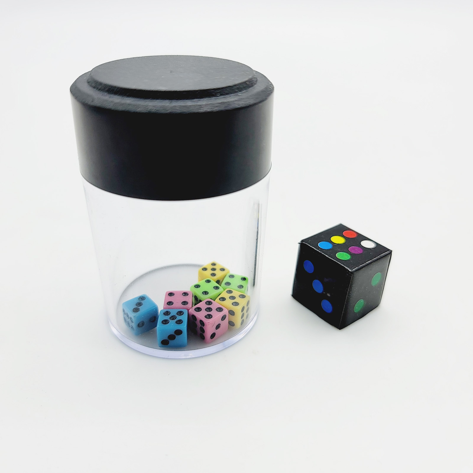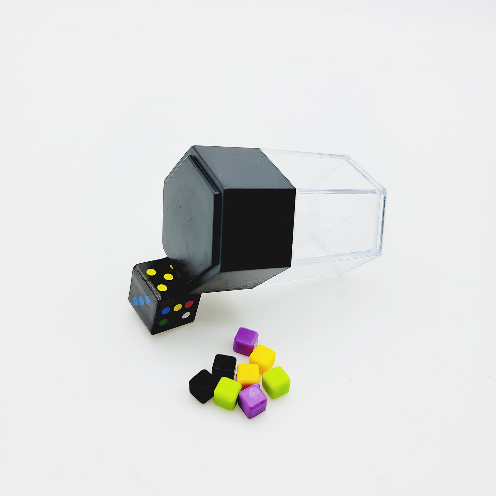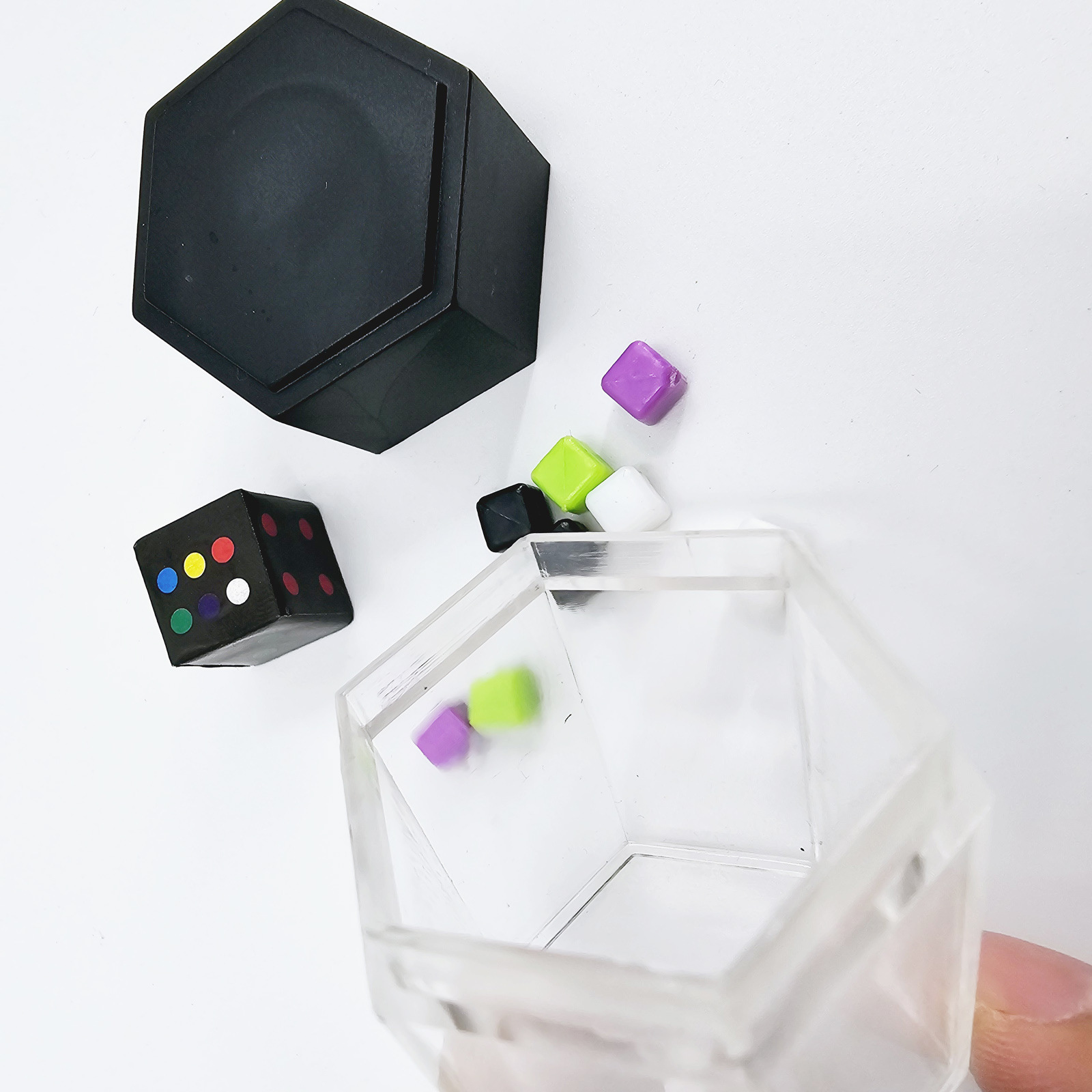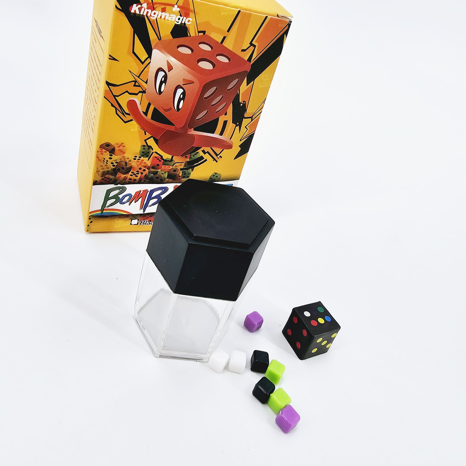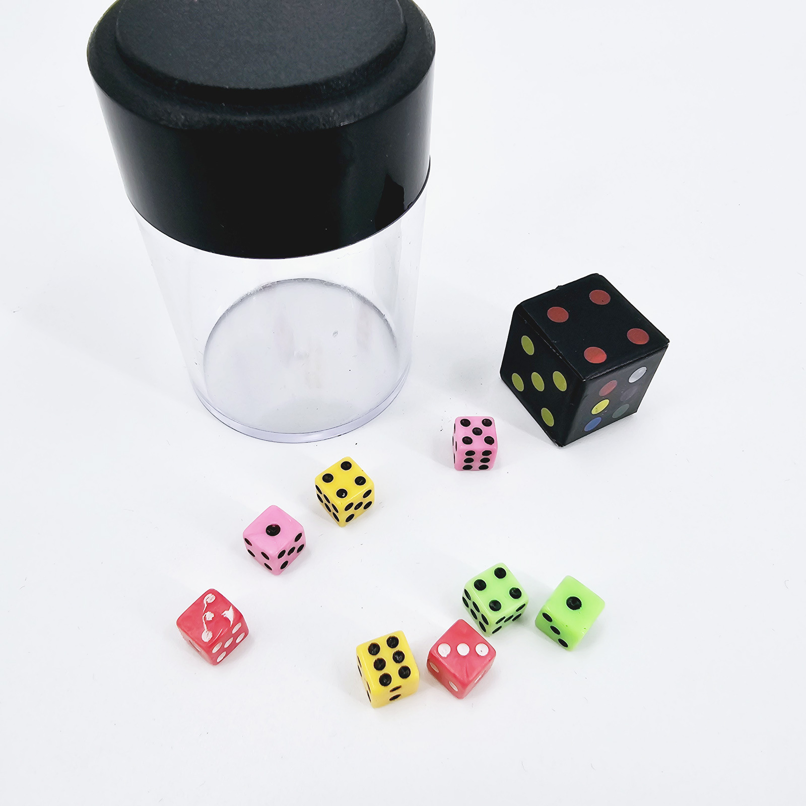 一颗普通的黑色大骰子放在透明盒中,魔术师一摇透明盒,大骰子瞬间变成了8颗小的白色骰子,神奇惊人,此道具可交于观众检查。一颗大骰子放在透明盒中,魔术一摇透明盒,大骰子瞬间变成了很多小骰子,非常神奇,此道具完全可以交给观众检查。