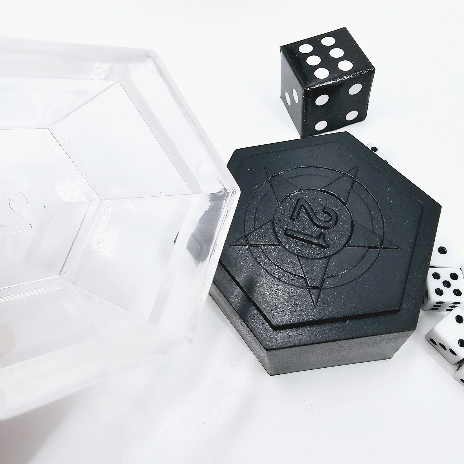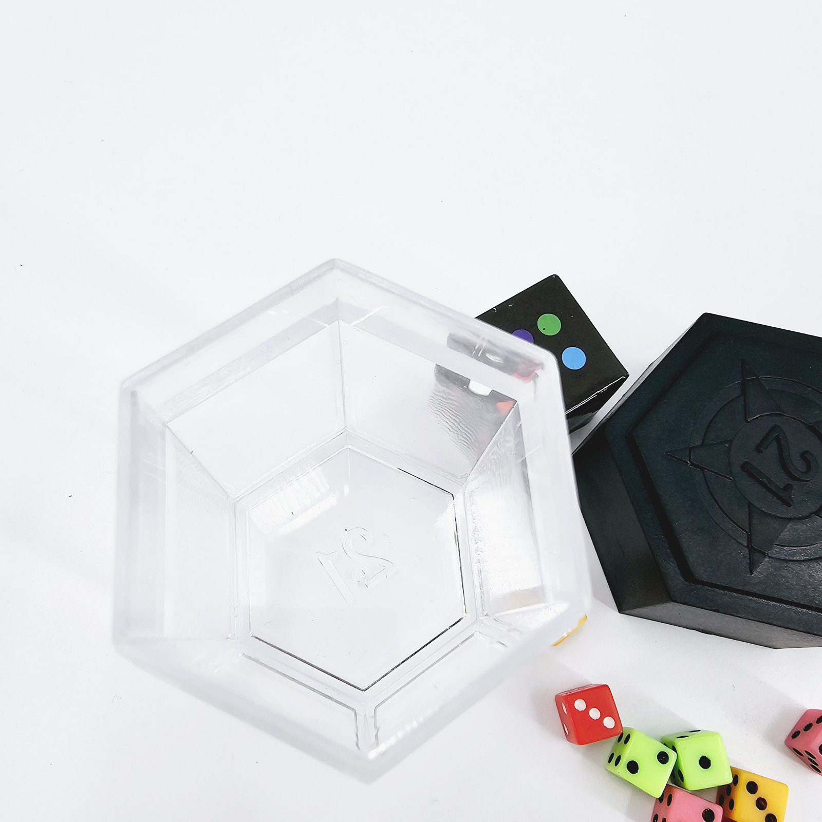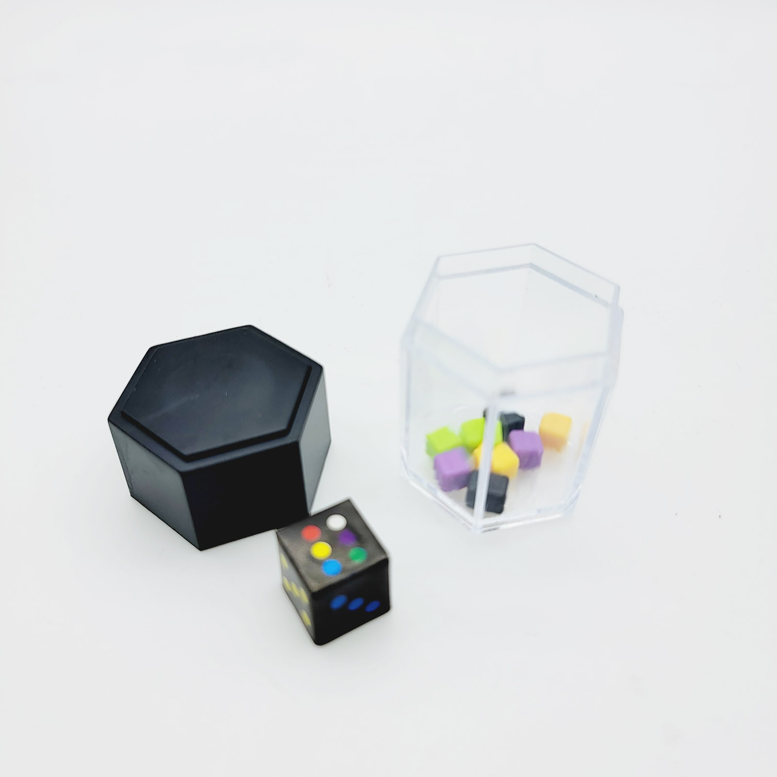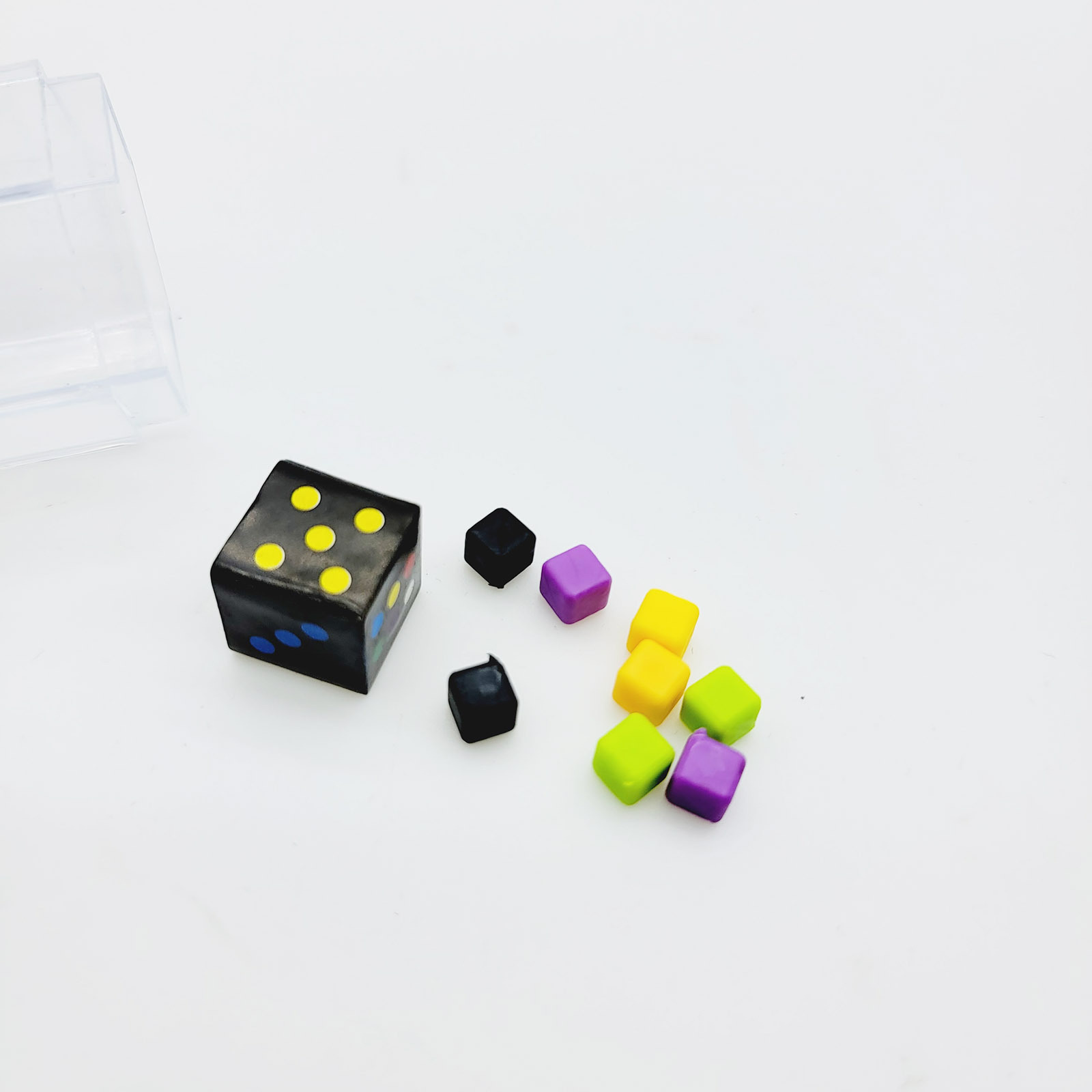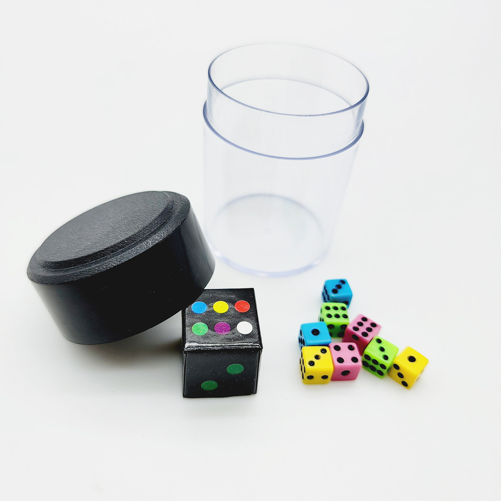 一颗普通的黑色大骰子放在透明盒中,魔术师一摇透明盒,大骰子瞬间变成了8颗小的白色骰子,神奇惊人,此道具可交于观众检查。一颗大骰子放在透明盒中,魔术一摇透明盒,大骰子瞬间变成了很多小骰子,非常神奇,此道具完全可以交给观众检查。