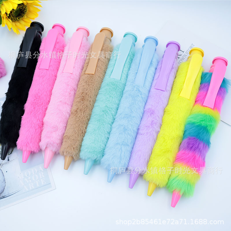 超大毛绒笔28cm巨大型圆珠笔创意毛茸茸高颜值按动手账学生多色
