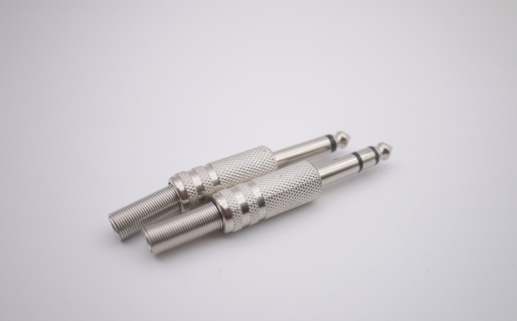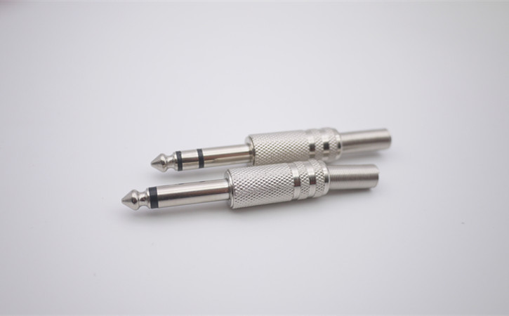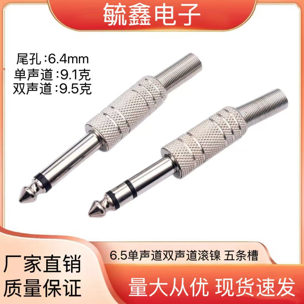 金属镀镍滚花6.5插头 6.35单声道音频插头话筒大三芯6.35插头