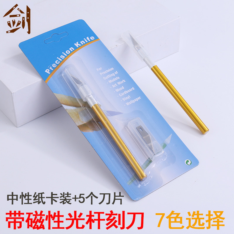 刀片:刀盒是5个刀片,一个刀帽+铝杆铝制夹头、中性包装、6个颜色可选