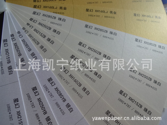优质双面星幻纸、星彩纸、珠光纸,有银白、珠白、亮金、古铜等,克重:120克、215克、250克、285克,787X1092mm、889X635mm、720*1020mm。