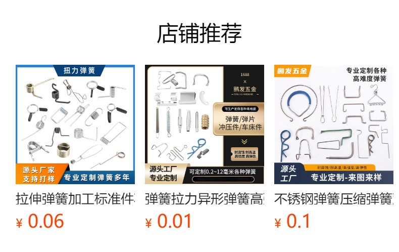 我厂具有市场先进的美国全数控无凸轮弹簧设备,专业生产各种高难度,高精密度拉力弹簧、扭力弹簧、压缩弹簧、发条弹簧、涡卷弹簧、电池弹簧、玩具弹簧、卡簧、模具弹簧、油锯弹簧、工艺品弹簧、减震弹簧,欢迎广大客户垂询•根据客户要求:选用材质-确认尺寸-弹簧要求(力度、表面处理)-采购数量- 含税(不含税)-运输成本等方面报价