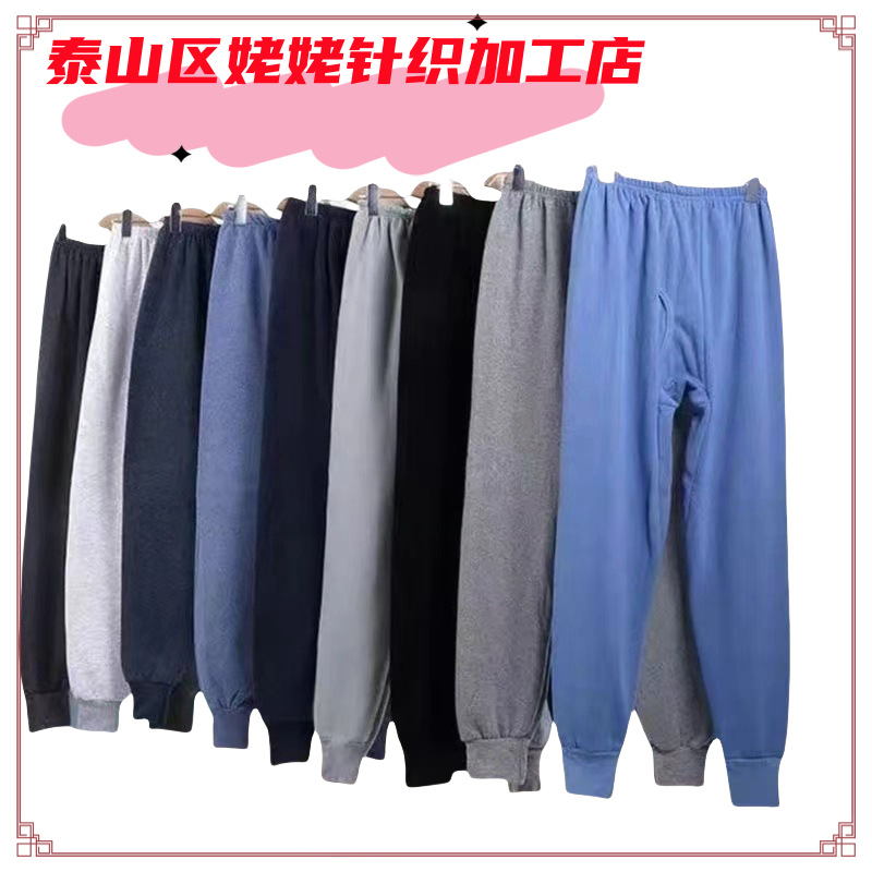 男士100%纯棉高腰秋裤 加肥加大宽松保暖裤 中老年打底裤纯色秋裤